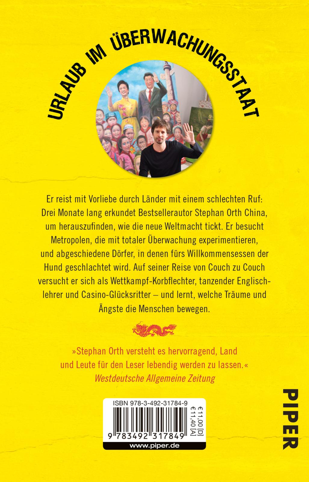 | Schlagworte | Abenteuer • Begegnungen • Bestseller • Bestsellerautor • Bilder • Bildteil • Buch • Bücher • China • Chinesisch • Corona • Corona virus • Coronavirus • Coronavirus China • CouchSurfing • Couchsurfing im Iran • Couchsurfing in China • Couchsurfing in Russland • Dandong • Fotos • Gastfreundschaft • Hightech • Karte • Konfuzius • Kontrolle • Macao • Papego • Paperback • Porträt eines Landes • Reise • Reisebericht • Reisebeschreibung • Reiseerzählung • Reisen in China • Shanghai • spannend • spiegel bestseller • SPIEGEL-Bestseller • Supermacht • Tourimus • Überwachungsstaat • Urlaub • Urlaub in China • Urlaubslektüre • Xingjiang • Zensur |
