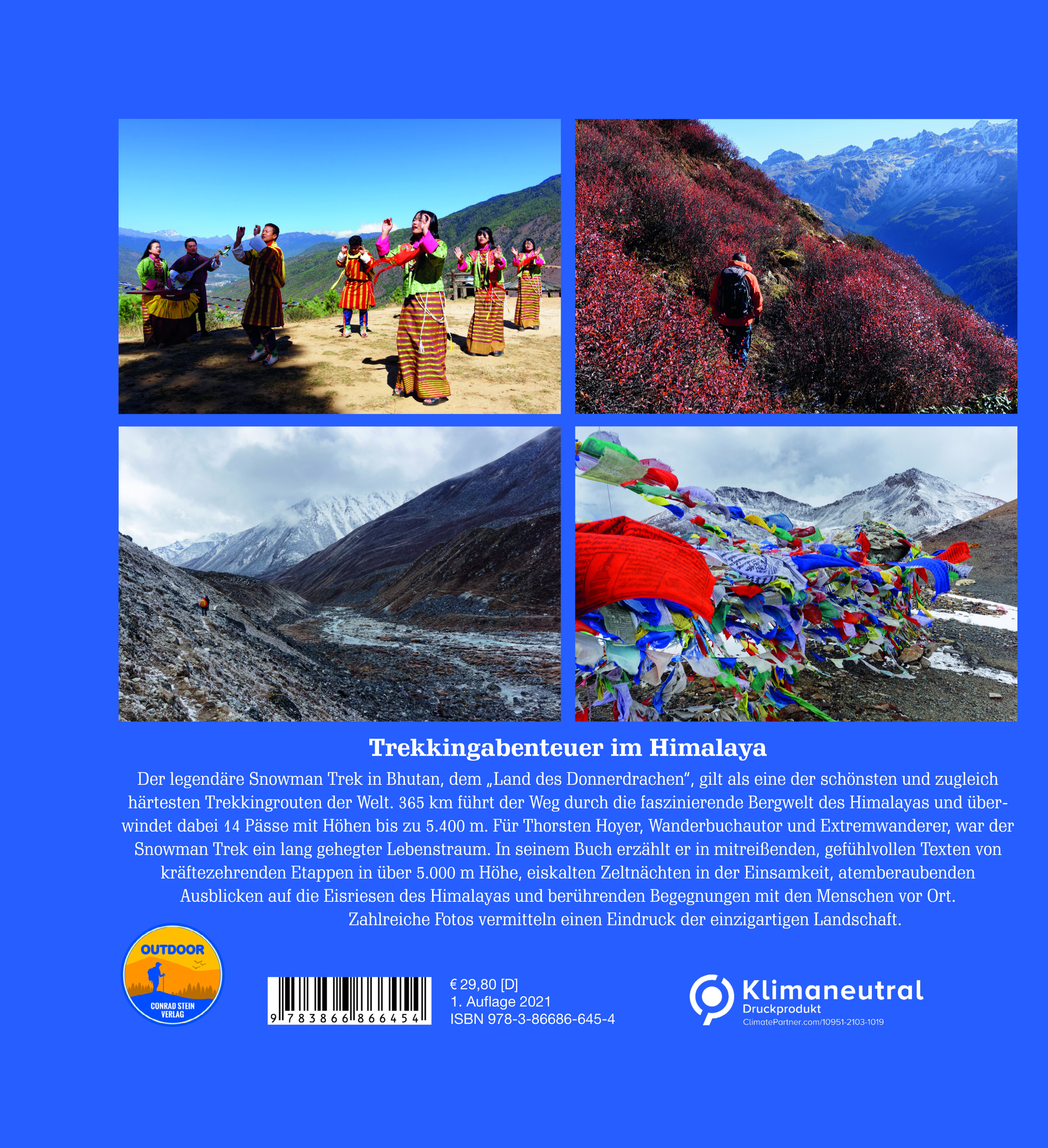 Mitreißender Erlebnisbericht über eine Trekkingtour auf einem der schönsten und härtesten Wanderwege der Welt: dem Snowman-Trek durch den Himalaya in Bhutan, faszinierende Fotos der atemberaubenden Landschaft mit ihren schneebedeckten Gipfeln und hohen Pässen, abgelegenen Tälern und einsamen Bergdörfern.