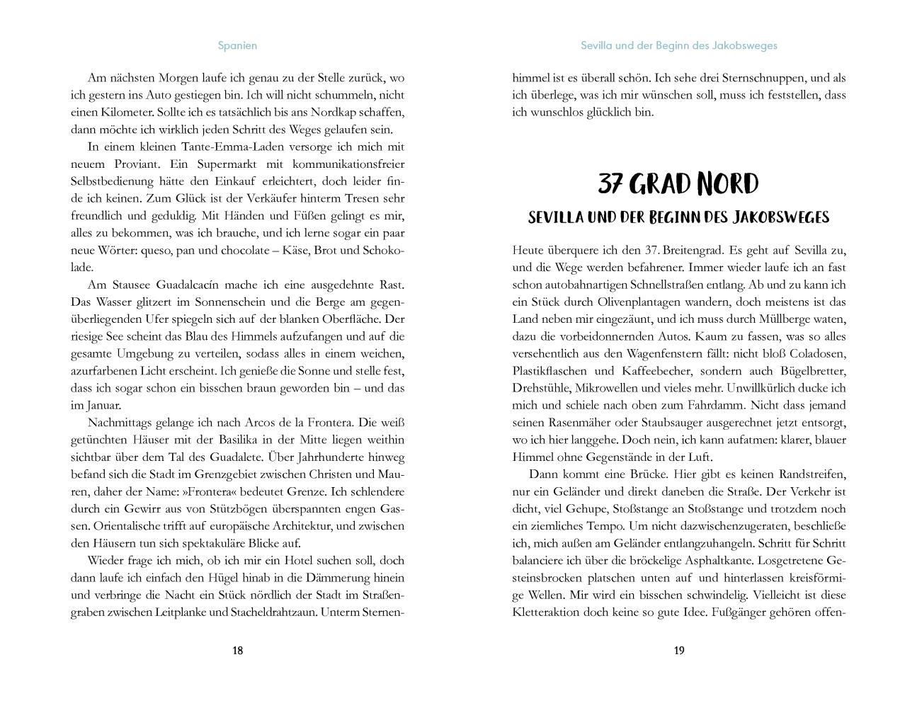 Die Route führt ihn von Spanien nach Frankreich durch Deutschland, Dänemark, Schweden und Finnland bis an sein Ziel in Norwegen. Er spricht kein Spanisch und auch kein Schwedisch, ist fünf Monate auf dem Weg Richtung Norden vollkommen auf sich allein gestellt, aber Sprache ist beim Wandern kein Problem. Philipp Fuge trifft auf seinem Weg viele herzliche Menschen, die seine Reise einzigartig machen. Er erspürt die Eigenheiten der Länder und Regionen und die Besonderheiten der Landschaften, die er durchwandert. Auch die Schönheit der Natur lernt er durch seine entschleunigte Fortbewegung wieder viel mehr zu schätzen. Dass er bei dieser Wanderung kein einziges Mal seinen Pass vorzeigen muss, macht seine Reise aber auch zu einem Plädoyer für ein Europa ohne Grenzen.