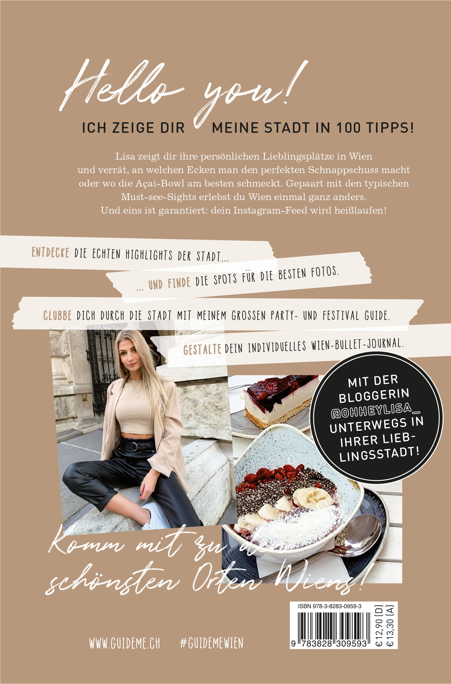 WIEN IN 100 TIPPS. Die Travel-Bloggerin Lisa Bögelein zeigt dir ihre Lieblingsstadt Wien und verrät, an welcher Ecke man den perfekten Schnappschuss macht und wo die Melange oder heiße Schokolade am besten schmeckt! Insta-Spots sind in diesem liebevoll illustrierten Wien-Reiseführer gepaart mit den typischen Sehenwürdigkeiten. Ausgelassene Partynächte garantieren der große Clubbing-Guide sowie Festivalempfehlungen. Auf Kreativseiten hältst du Fotos oder Erinnerungen zu den Highlights fest, während du auf freien Seiten Platz hast, um Listen zu erstellen und Wichtiges rund um deinen Citytrip zu notieren. Praktisch: das handliche Format und die herausnehmbare Faltkarte. Und eins ist garantiert: Dein Instagram-Feed wird heißlaufen!