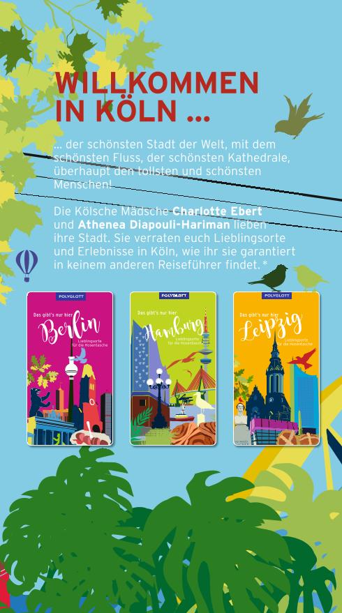 Diese und weitere ganz besondere Kölner Orte verraten dir Locals in POLYGLOTTs etwas anderem City Guide im originellen Fächer-Format mit wiederverwendbarer Banderole. Mit konkreten Adressen und Empfehlungen auf jeder Fächerseite genügt ein kurzer Blick und das nächste spannende Ziel auf dem unvergesslichen Köln-Trip ist gefunden.