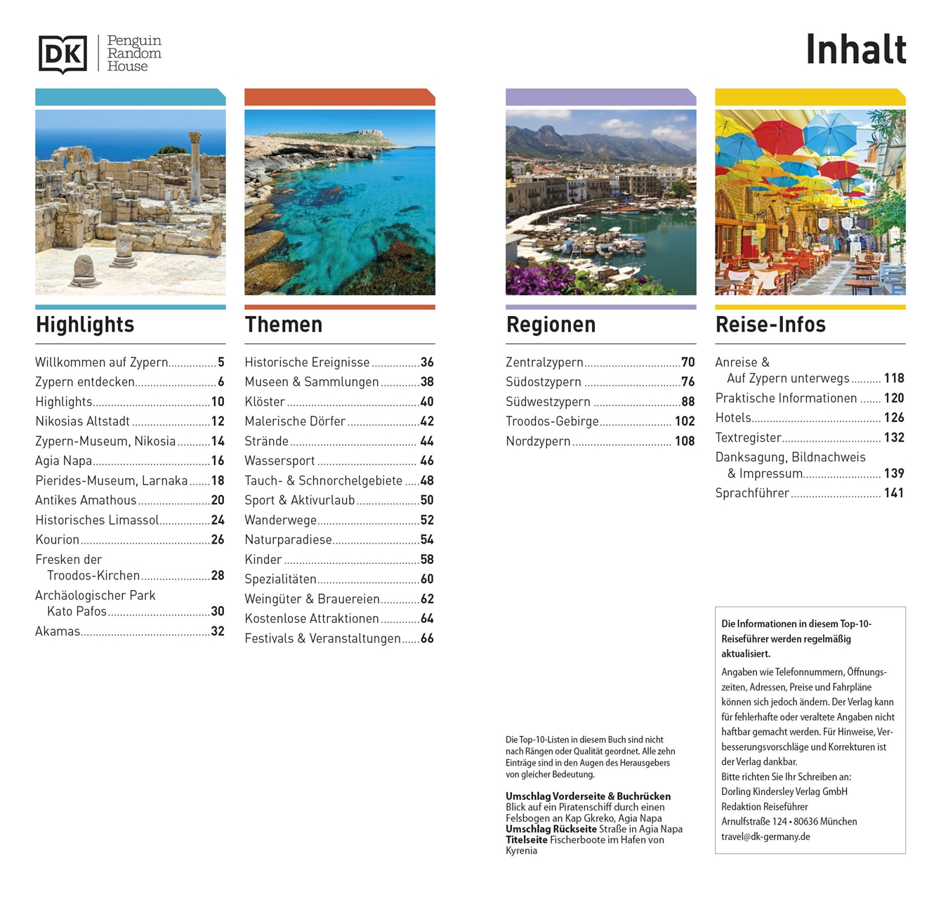 Mit dem Top 10 Reiseführer Zypern die reizvolle Mittelmeerinsel entdecken: Der historische Reichtum der geteilten Insel manifestiert sich in faszinierenden Relikten aus vielen Jahrtausenden. Besucher begeistern aber auch die eindrucksvolle Landschaft, die wunderschönen Strände und die Gastfreundschaft der Einwohner. Mit dem Top 10 Zypern können Sie alle Facetten dieser reizvollen Mittelmeerinsel entdecken hier finden Sie alle Informationen, die Sie für einen unvergesslichen Aufenthalt benötigen. Alle Sightseeing-Highlights für Ihre Inselreise finden Sie hier im einprägsamen Top-10-Listen-Format wunderbar übersichtlich präsentiert. Dieser Zypern-Reiseführer macht Ihren Aufenthalt unvergesslich!