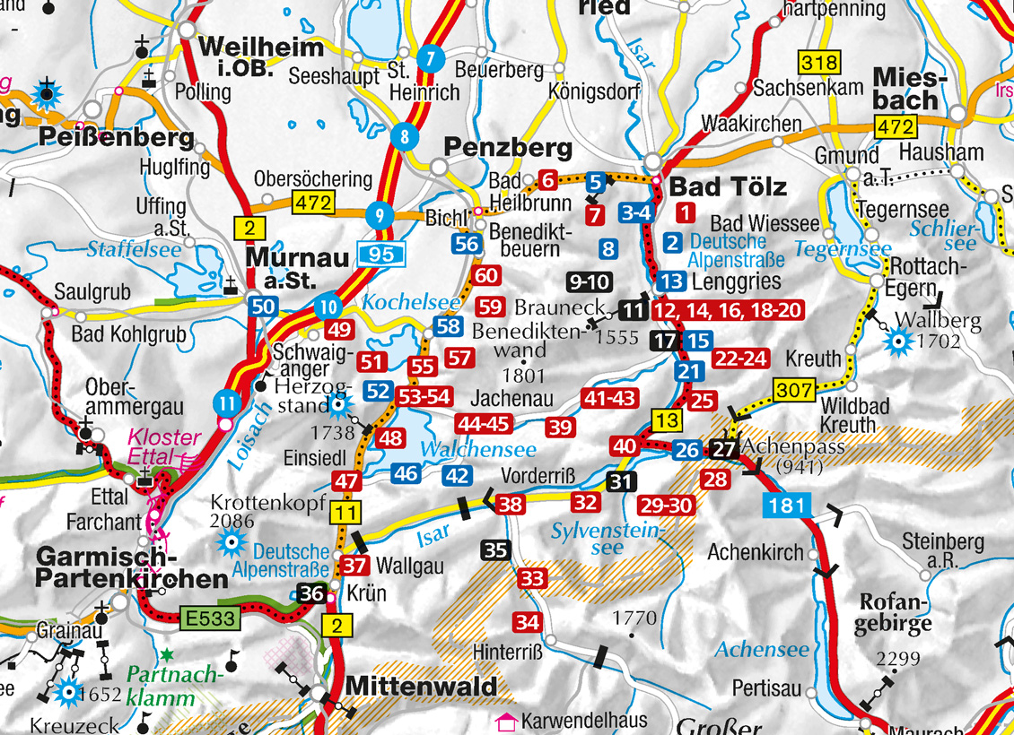 - Das sportliche Highlight: Auch wenn es im Vorkarwendel höhere Berge gibt - Königin des Isarwinkels ist die Benediktenwand mit mächtiger Nordwand und weiten Aufstiegen, von denen der über Brauneck und Achselköpfe der längste und anspruchsvollste ist.