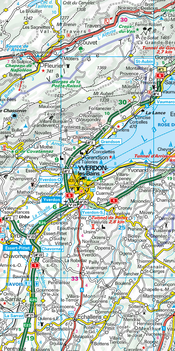 Sollte das GPS mal nicht funktionieren oder das Handy keinen Akku mehr haben, helfen Ihnen die auf der Karte deutlich verzeichneten Strassen, Aussichtspunkten, Bahnhöfen, Einkehrmöglichkeiten, Campingplätzen, Parkplätzen, etc. stets die Orientierung zu behalten.