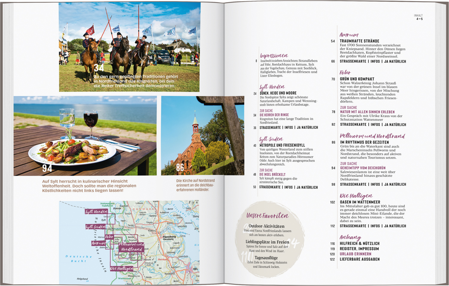 DuMont Bildatlas Sylt - die Bilder der Fotografin Sabine Lubenow zeigen faszinierende Panoramen und ungewöhnliche Nahaufnahmen. Sechs Kapitel, gegliedert nach regionalen Gesichtspunkten, geben einen Einblick in die nordfriesischen Inseln. Zu jedem Kapitel gehören Hintergrundreportagen und Specials, die aktuelle und interessante Themen aufgreifen. Eines der DuMont Themen berichtet über die lange Tradition des Ringreitens, ein anderes Thema von Sylts immerwährenden Kampf gegen die zerstörerische See, und ein weiteres Thema verrät, warum das Salzwiesenlamm, weit über die Deiche hinaus, eine geschätzte Delikatesse ist. Den Abschluss eines jeden Kapitels bilden Infoseiten mit allen wichtigen Sehenswürdigkeiten, die auf der nebenstehenden detaillierten Reisekarte leicht zu lokalisieren sind. Viele persönliche Tipps des Autors sowie Empfehlungen zu Hotels und Restaurants ergänzen das Infoangebot. Abgerundet wird der Bildatlas durch das Servicekapitel, das praktische und allgemeine Informationen für die Vorbereitung der Reise beinhaltet sowie Daten und Fakten zum Reiseziel liefert.