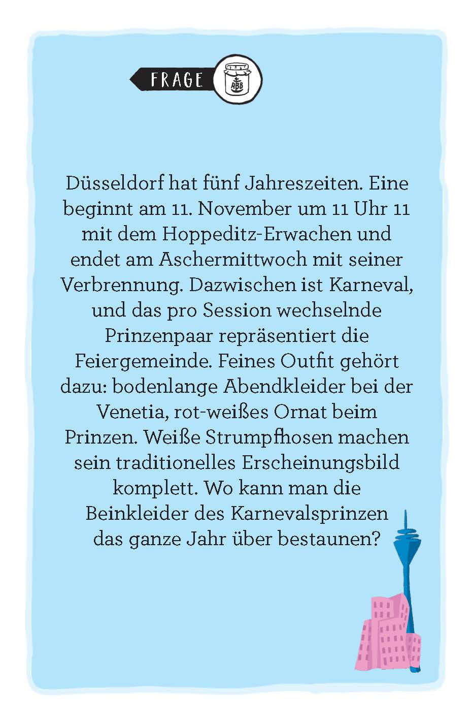 | Schlagworte | Düsseldorf • Quiz • Quizbox • Raten • Ratespiel • Rätsel • Regionales • Regio-Quiz • Spiel • Städtequiz • Stadtquiz • unnützes Wissen • Unterhaltung |