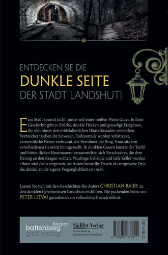Eine Stadt kommt nicht immer mit einer weißen Weste daher. In ihrer Geschichte gibt es Brüche, dunkle Flecken und gruselige Ereignisse, die sich hinter den mittelalterlichen Häuserfassaden verstecken. Verbrecher trieben ihr Unwesen, Todesurteile wurden vollstreckt, vermeintliche Hexen verbrannt, die Bewohner der Burg Trausnitz von verschiedenen Geistern heimgesucht. In dunklen Gassen lauerte der Teufel und hinter dicken Hausmauern versammelten sich Verschwörer, die dem Herzog an den Kragen wollten. Wuchtige Gebäude und tiefe Keller wurden erbaut und dann vergessen, sie fristen heute ihr Dasein als vergessene Orte, die dunkel an die eigene Vergänglichkeit erinnern.Lassen Sie sich mit den Geschichten des Autors Christian Baier zu den dunklen Geheimnissen Landshuts entführen. Die packenden Fotos von Peter Litvai garantieren ein vollendetes Gruselerlebnis.