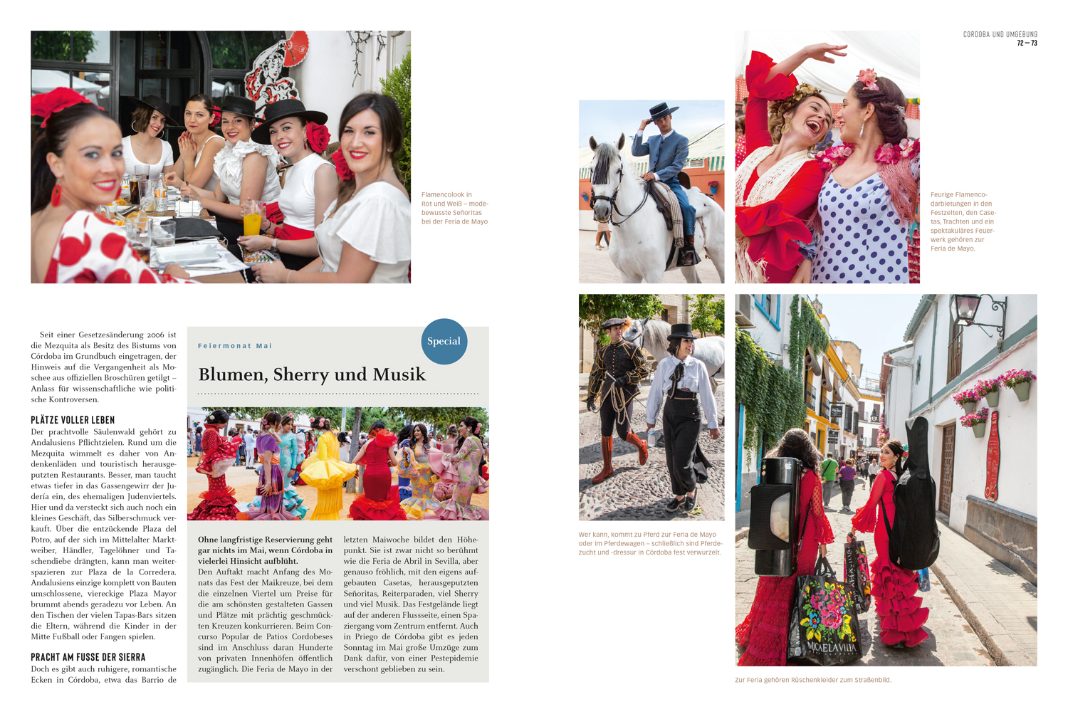 Wahrhaft sonnenverwöhnt ist die Provinz Andalusien - das Traumziel an Mittelmeer und Atlantik. Städte wie Granada, Sevilla und Córdoba offenbaren prächtige historische Monumente, darunter das wohl schönste Zeugnis der jahrhundertelangen Maurenherrschaft, die Alhambra. Zu den großen Ferias ist hier jedermann im Ausnahmezustand. Auf den Festplätzen paradieren stolze Reiter, der Sherry fließt in Strömen, und überall wird hingebungsvoll Flamenco getanzt. Surfer und Kiter zieht es wohl eher an die Costa de la Luz, wo Wind, Wellen und endlose Weite warten, und leidenschaftliche Sonnenanbeter an die traumhaften Strände der Costa del Sol. Doch wer im Urlaub den großen Nervenkitzel sucht, der wagt sich in Malagas Hinterland auf dem wieder instandgesetzten Caminito del Rey in die Schlucht El Chorro.
