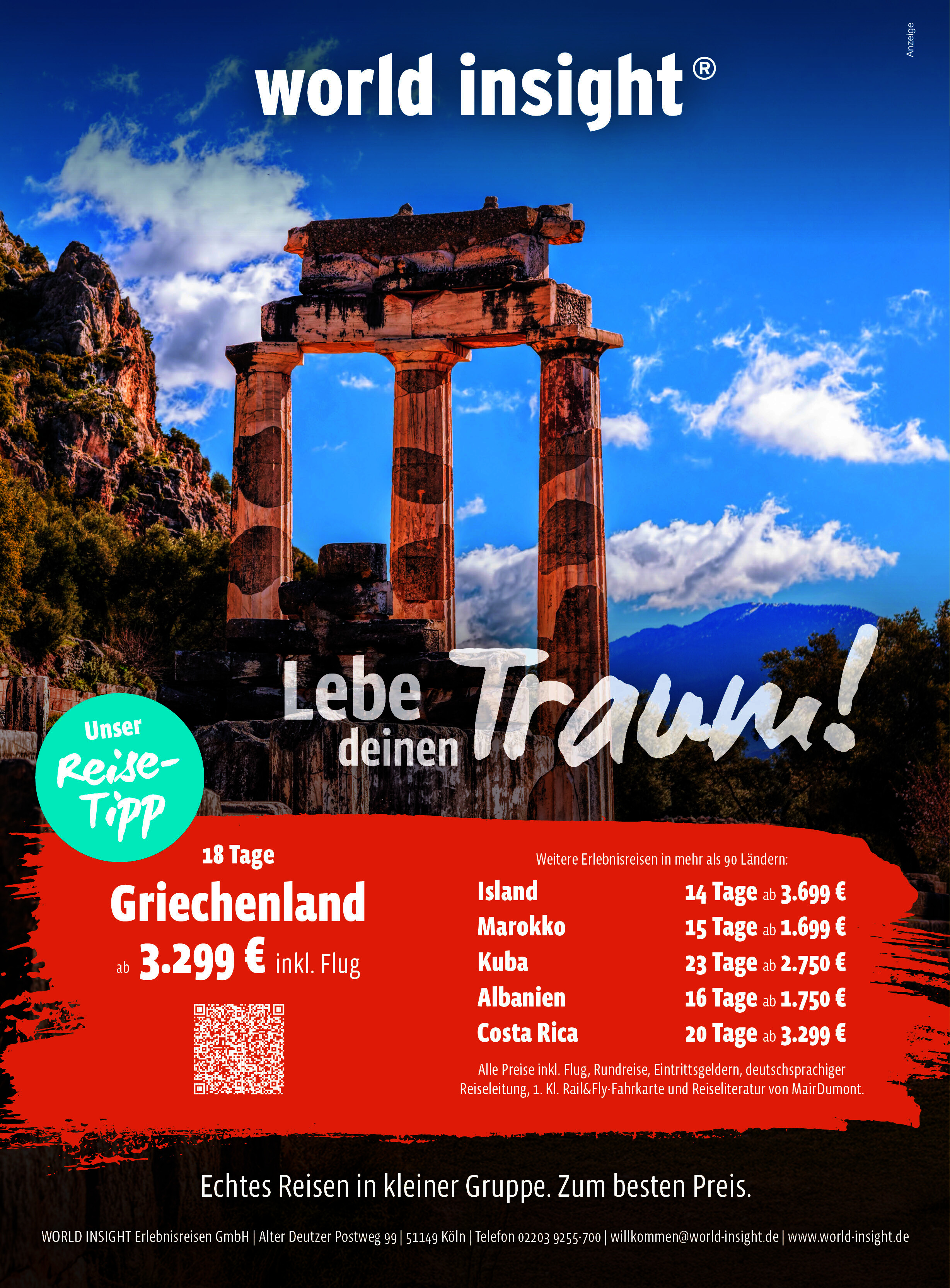 Jede Reise beginnt mit einer Inspiration - Wie kein anderes Magazin lädt der DUMONT Bildatlas mit seinen großformatigen Bildern ein, bereits vor der Reise ein bisschen zu träumen. Berührend, aufregend und spannend sind die Ideen, die wir für Sie zusammengetragen haben - machen Sie sich schon zuhause vertraut mit allem, was für Ihr Reiseziel wichtig und wissenswert ist. Wir präsentieren Ihnen das Magazin mit überarbeiteten Inhalten, einem modernen Design und zwei neuen Rubriken: "Ja, natürlich" mit zahlreichen Tipps, wie man nachhaltig unterwegs sein kann und "Urlaub erinnern" mit Andenken, Eindrücken und Erinnerungen, die unsere Autoren von ihrer Reise mitgebracht haben.