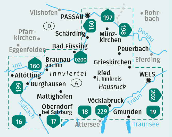 KOMPASS Wanderkarten-Set 201 Innviertel, Hausruck (2 Karten) 1:50.000
