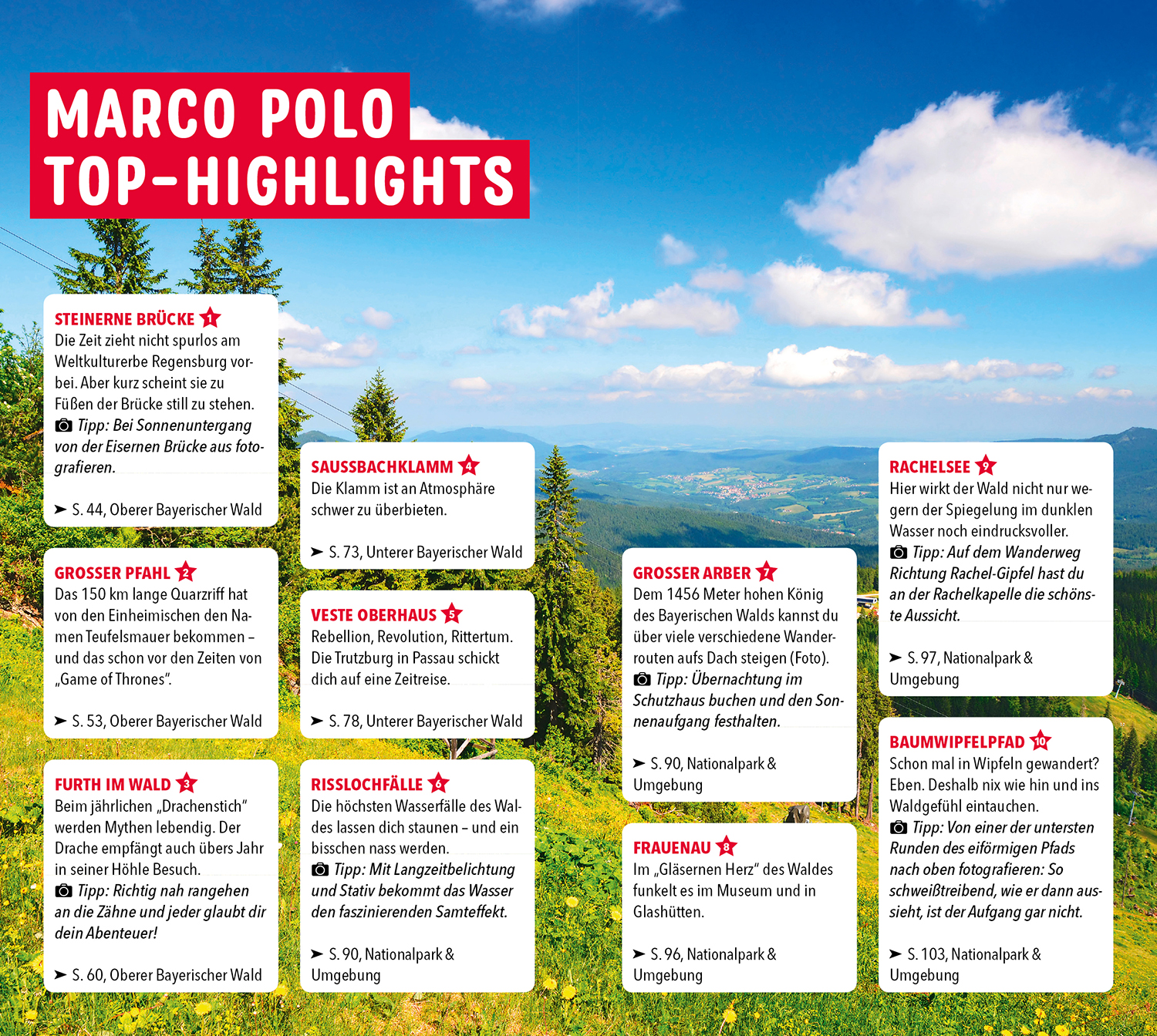 Ob Action oder Erholung pur: Mit dem MARCO POLO Reiseführer Bayerischer Wald kommst du immer maximal entspannt ans Ziel und verpasst kein Highlight der herrlichen Mittelgebirgsregion!