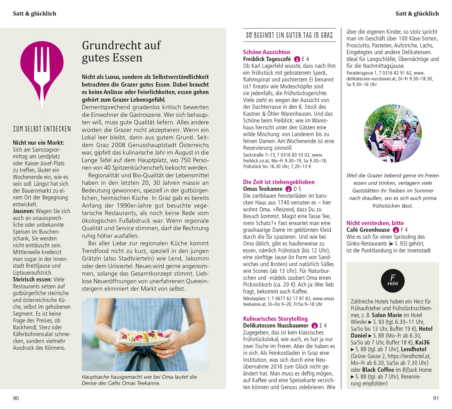 Mit den Übersichtskarten, genauen Stadtteilplänen und dem separaten großen Cityplan können Sie sich nach Lust und Laune durch Graz treiben lassen.