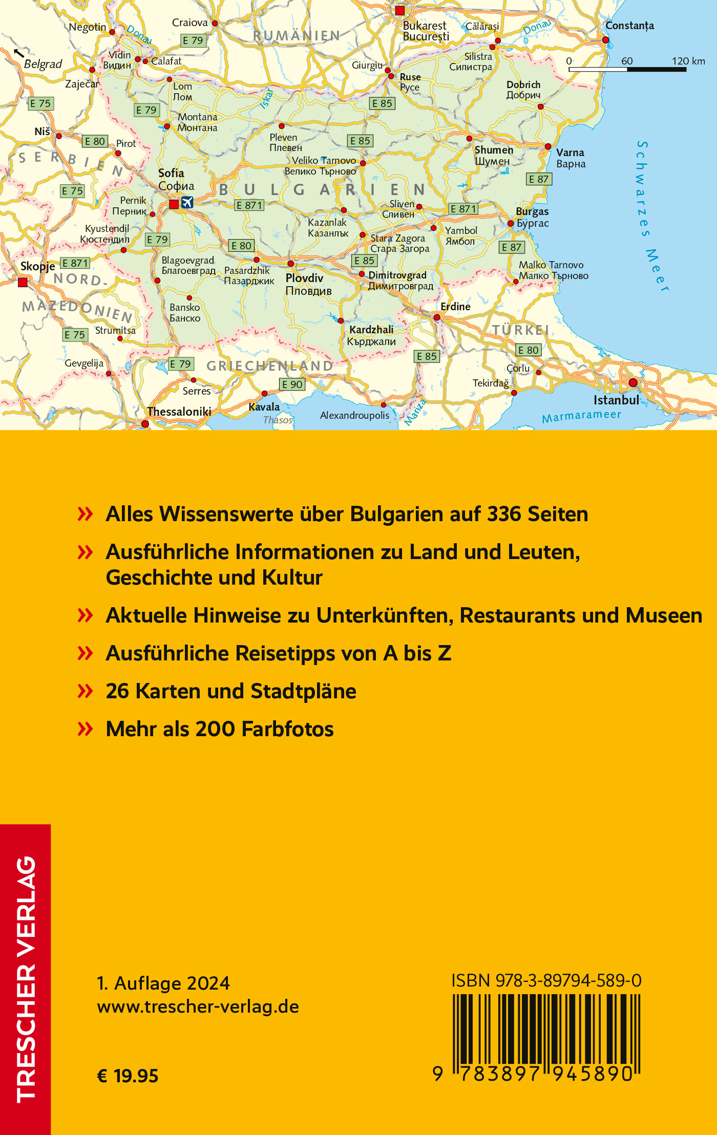 Der Trescher-Reiseführer BULGARIEN beschreibt sämtliche Regionen und Sehenswürdigkeiten zwischen Donautiefebene, Meer und Gebirge in allen Facetten. Geschichte und Kultur, Feste und Feiern, die besten Empfehlungen für Unterkunft, Essen und Trinken kommen ebenfalls ausführlich zur Sprache. Ergänzt mit zahlreichen reisepraktischen Tipps, gibt das Buch eine ebenso spannende wie kenntnisreiche und zuverlässige Lektüre unterwegs in Bulgarien an die Hand.