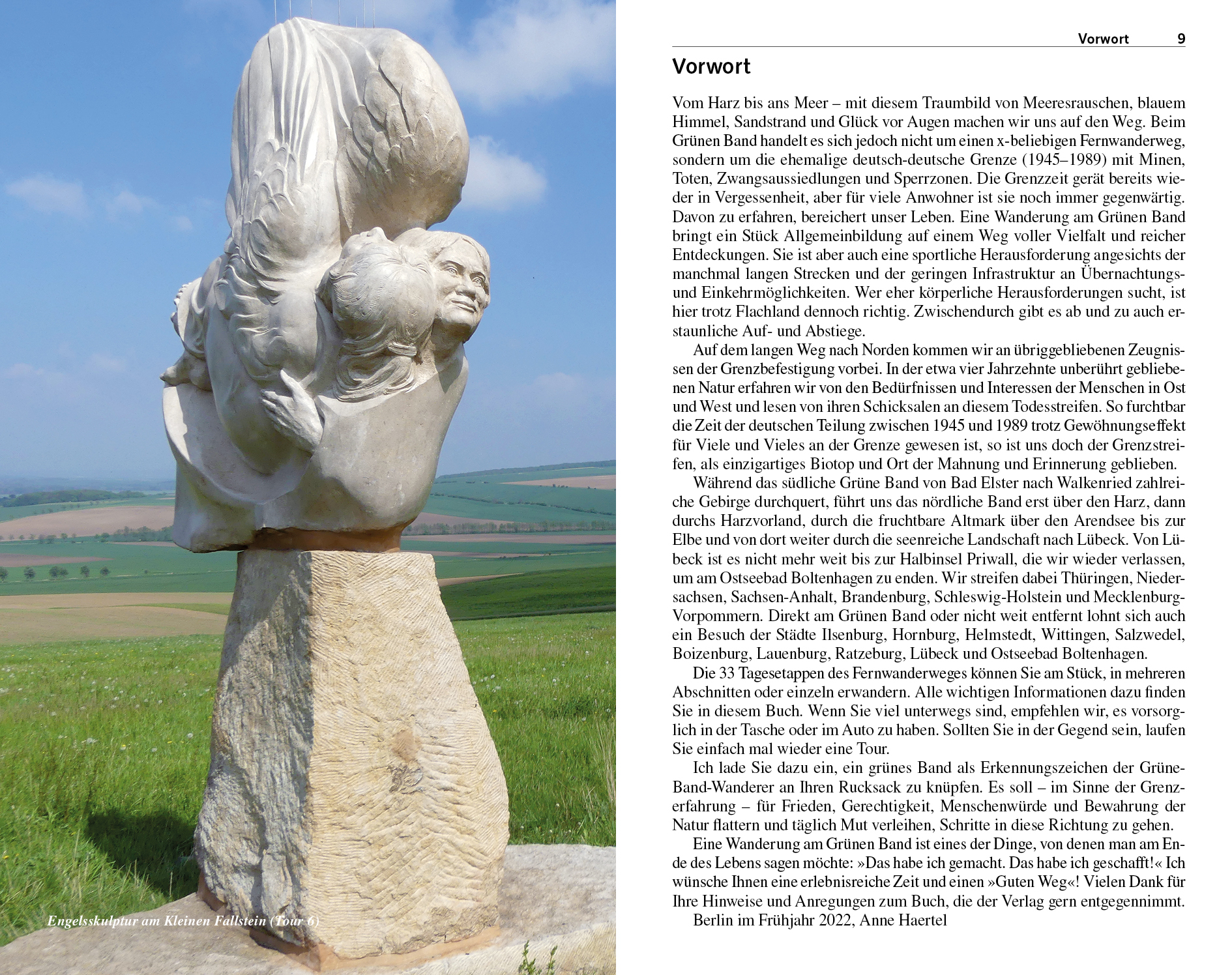 VORWORT Vom Harz bis ans Meer – mit diesem Traumbild von Meeresrauschen, blauem Himmel, Sandstrand und Glück vor Augen machen wir uns auf den Weg. Beim Grünen Band handelt es sich jedoch nicht um einen x-beliebigen Fernwanderweg, sondern um die ehemalige deutsch-deutsche Grenze (1945–1989) mit Minen, Toten, Zwangsaussiedlungen und Sperrzonen. Die Grenzzeit gerät bereits wieder in Vergessenheit, aber für viele Anwohner ist sie noch immer gegenwärtig. Davon zu erfahren, bereichert unser Leben. Eine Wanderung am Grünen Band bringt ein Stück Allgemeinbildung auf einem Weg voller Vielfalt und reicher Entdeckungen. Sie ist aber auch eine sportliche Herausforderung angesichts der manchmal langen Strecken und der geringen Infrastruktur an Übernachtungs- und Einkehrmöglichkeiten. Wer eher körperliche Herausforderungen sucht, ist hier trotz Flachland dennoch richtig. Zwischendurch gibt es ab und zu auch erstaunliche Auf- und Abstiege. Auf dem langen Weg nach Norden kommen wir an übriggebliebenen Zeugnissen der Grenzbefestigung vorbei. In der etwa vier Jahrzehnte unberührt gebliebenen Natur erfahren wir von den Bedürfnissen und Interessen der Menschen in Ost und West und lesen von ihren Schicksalen an diesem Todesstreifen. So furchtbar die Zeit der deutschen Teilung zwischen 1945 und 1989 trotz Gewöhnungseffekt für Viele und Vieles an der Grenze gewesen ist, so ist uns doch der Grenzstreifen, als einzigartiges Biotop und Ort der Mahnung und Erinnerung geblieben. Während das südliche Grüne Band von Bad Elster nach Walkenried zahlreiche Gebirge durchquert, führt uns das nördliche Band erst über den Harz, dann durchs Harzvorland, durch die fruchtbare Altmark über den Arendsee bis zur Elbe und von dort weiter durch die seenreiche Landschaft nach Lübeck. Von Lübeck ist es nicht mehr weit bis zur Halbinsel Priwall, die wir wieder verlassen, um am Ostseebad Boltenhagen zu enden. Wir streifen dabei Thüringen, Niedersachsen, Sachsen-Anhalt, Brandenburg, Schleswig-Holstein und Mecklenburg-Vorpommern. Direkt am Grünen Band oder nicht weit entfernt lohnt sich auch ein Besuch der Städte Ilsenburg, Hornburg, Helmstedt, Wittingen, Salzwedel, Boizenburg, Lauenburg, Ratzeburg, Lübeck und Ostseebad Boltenhagen. Die 33 Tagesetappen des Fernwanderweges können Sie am Stück, in mehreren Abschnitten oder einzeln erwandern. Alle wichtigen Informationen dazu finden Sie in diesem Buch. Wenn Sie viel unterwegs sind, empfehlen wir, es vorsorglich in der Tasche oder im Auto zu haben. Sollten Sie in der Gegend sein, laufen Sie einfach mal wieder eine Tour. Ich lade Sie dazu ein, ein grünes Band als Erkennungszeichen der Grüne-Band-Wanderer an Ihren Rucksack zu knüpfen. Es soll – im Sinne der Grenzerfahrung – für Frieden, Gerechtigkeit, Menschenwürde und Bewahrung der Natur flattern und täglich Mut verleihen, Schritte in diese Richtung zu gehen. Eine Wanderung am Grünen Band ist eines der Dinge, von denen man am Ende des Lebens sagen möchte: “Das habe ich gemacht. Das habe ich geschafft!” Ich wünsche Ihnen eine erlebnisreiche Zeit und einen "Guten Weg"! Vielen Dank für Ihre Hinweise und Anregungen zum Buch, die der Verlag gern entgegennimmt. >>> Den Wanderführer zum südlichen Abschnitt des Grünen Bands zwischen Bad Elster und Walkenried (37 Etappen) finden Sie finden Sie auf der Website des Trescher Verlags.
