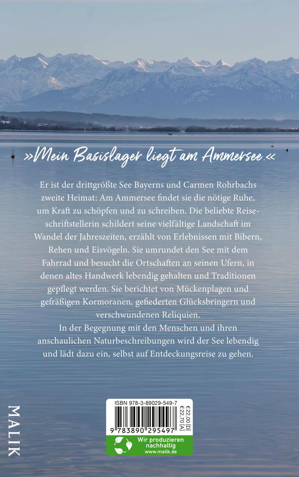 Vorwort: Wie der Ammersee zu meiner Heimat wurdeMit dem Rad einmal rund um den SeeOrte am SeeSchondorf - Station auf dem JakobswegSt. Ottilien - Dem Himmel nah und doch mitten in der WeltDießen - Von Fischern, Töpfern und der heiligen MechthildRaisting - Mit dem Himmel in KontaktHerrsching - Reise in die VergangenheitAndechs - Viele Wege führen auf den »heiligen Berg«Im Wandel der JahreszeitenSommerEine Begegnung der besonderen ArtDer Duft von HeuDie Ricke und ihr KitzDie Jagd der GänsesägerAltweibersommerHerbstSonnenaufgang am SeeStare im SchilfGoldener HerbstNovembernebelWinterTag der EntenGehen im SchneeDer Morgen der GreifvögelSchneehimmelWintergästeWinter, ade!FrühlingFrühlingsahnungMärzfrühlingTraditionen, Begebenheiten und BegegnungenDer Dießener TöpfermarktDas Fischerstechen am AmmerseeDas Fest der Fischer zu »Peter und Paul«Mit dem Schiff über'n SeeDie Ammerseebahn - wie der Zug aus den Schienen sprangDie Störche von RaistingDer Bett eltanz - wie in Raisting junge Frauen und Männer verkuppelt werdenDie KeltenschanzeDer Park des FreiherrnDie Brachvögel vom AmmerseeAnhangZeittafel für die Ammersee-RegionAdressen