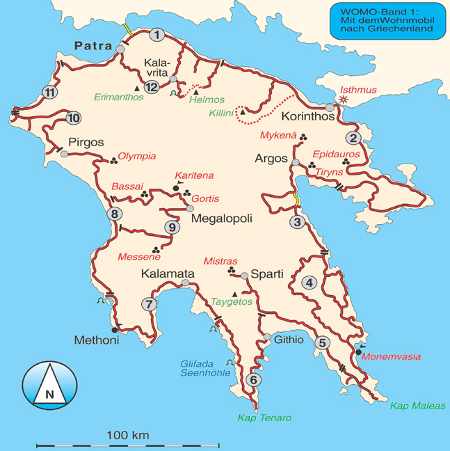 | Schlagworte | Baden • Camping • Kalamata • Kap Tenaro • Kastaniahöhle • Monemvasia • Mykenä • Navarino und Ochsenbauchbucht • Patra • Reisen • Theater von Epidauros • Urlaub • Virós-Schlucht • Wandern • Wohnmobil |