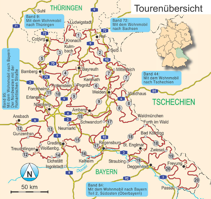 | Schlagworte | Altmühltal • Bayerischer Wald • Bayerische Wald nördlich und südlich • Coburg • Frankenwald • Fränkische Schweiz • Outdoor • Reisen • Urlaub • Wandern • Wohnmobil |