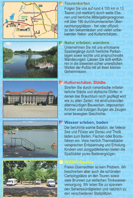 EINLADUNGJó napot, liebe WOMO-Familie!Mit diesem Buch möchten wir Ihnen Ungarn ans Herz legen. Jenes Land im "Nahen Osten", welches so spannende Geschichten zu erzählen vermag, das so facettenreich ist und welches so viele liebenswerte Menschen beherbergt. Lassen Sie sich entführen in die nicht enden wollenden Weiten der Pußta. Erfreuen Sie sich an den originellen Ziehbrunnen, deren lange hölzerne Balken kühn aus der Steppenlandschaft ragen. Bestimmt ziehen Sie auch die gewagten Dressurdarbietungen der Pferdehirten (Czikós) in den Bann. Verspüren sie Lust auf pulsierendes Leben, auf Kunst und Kultur? In Ungarns Städten gibt es viel zu entdecken! Unange-fochten an der Spitze steht natürlich Budapest, wohl eine der schönsten Metropolen Europas. Überzeugen Sie sich selbst - statten Sie dieser altehrwürdigen Donaustadt einen Besuch ab und genießen Sie das einzigartige Flair.Die Sommer im Land der Magyaren stehen im Ruf, sehr beständig zu sein. Da kommt nun der Plattensee ins Spiel. Das"Ungarische Meer" misst über siebzig Kilometer in der Länge und ist dabei nur wenige Meter tief. Angenehme Wassertemperaturen sind fast schon garantiert. Wer es noch wärmer schätzt, dem sei ein Besuch in einem Thermalbad empfohlen.In Ungarn sprudeln angeblich über 200 heiße Quellen - viele davon werden in den Thermen genutzt. Sich ins warme Wasser setzen, entspannen und abschalten - ein kleiner Traum!Sie wandern gern? Die Mittelgebirge mit ihren verwunschenen Pfaden erheben sich bis auf über tausend Meter, ebenso bieten sich idyllische Seen- und Flusslandschaften an.Merken Sie etwas? Dieses interessante Land nur auf Paprika, Gulasch und Stehgeiger zu reduzieren, wäre ein großer Fehler. Erleben Sie Ungarn, wir begleiten Sie gerne!"Jó napot" heißt "Guten Tag". Wir sind uns sicher, Sie werden in Ungarn bestimmt viele gute Tage erleben.Herzlichst IhrPeter Simm