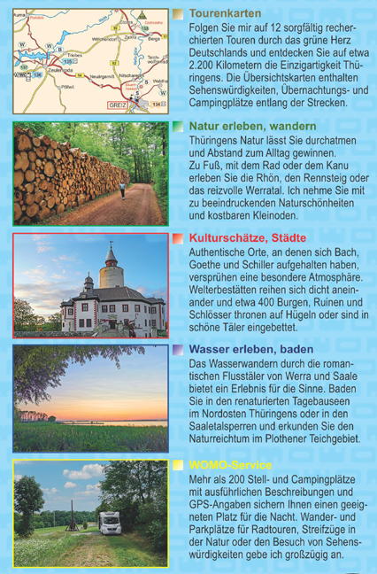 | Schlagworte | Camping • Eichsfeld • Eisenach • Hainich • Hohenwartetalsperre • Rennsteig • Rhön • Thüringer Wald • Urlaub • Wandern • Wartburg • Weimar • Wohnmobil |