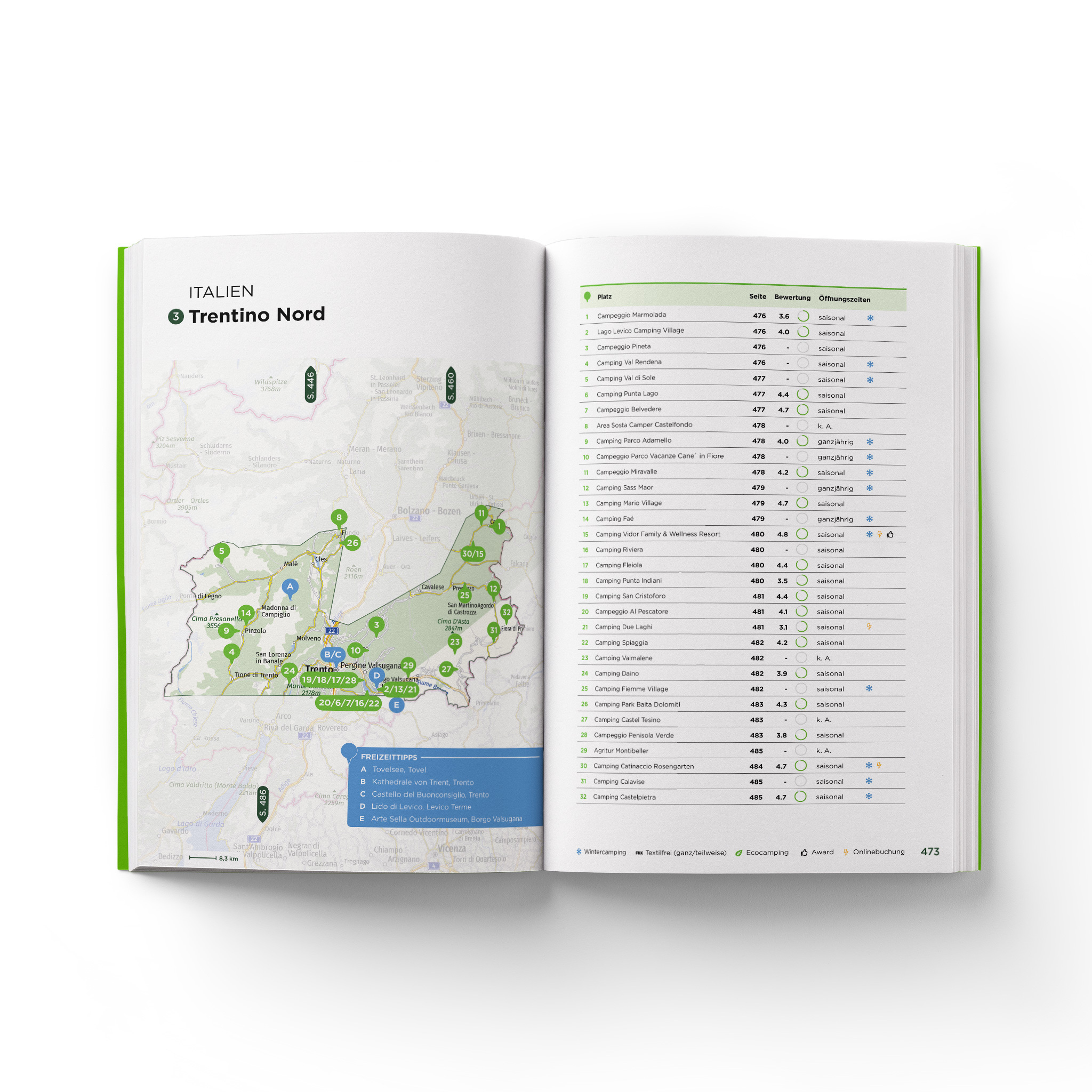 | Zusatzinfo | Zahlreiche Bilder der Campingplätze und der vorgestellten Regionen. |