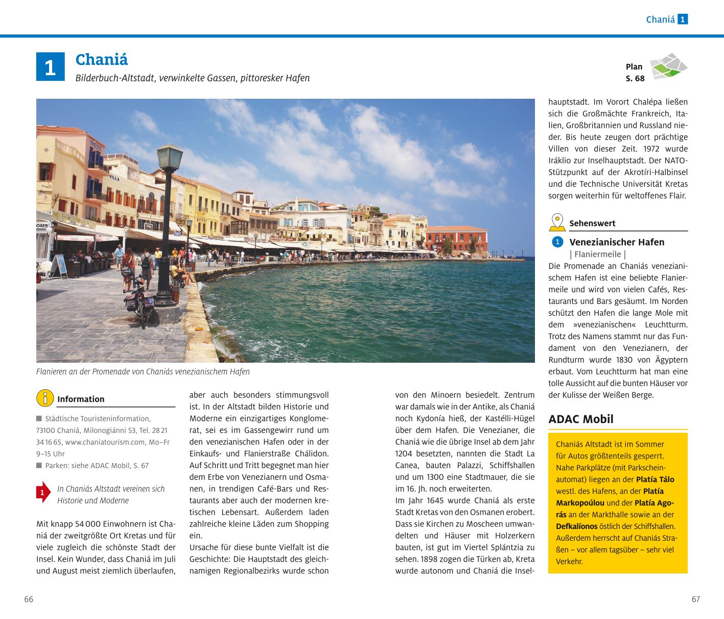 Dabei begleitet Sie der ADAC Reiseführer plus Kreta in das Urlaubsparadies im Mittelmeer und bietet übersichtliche Informationen zu allen Sehenswürdigkeiten, spannende Hintergründe zu Geschichte, Kunst und Kultur sowie umfangreiches Kartenmaterial in bester Qualität. Badeurlauber lieben die karibischen Sandstrände und Palmenoasen, Kulturreisende die Ruinen und antiken Städte, Aktivurlauber Kretas Berge und Schluchten und Familien die herzliche Gastfreundschaft. Geschichtsträchtig zeigt sich die größte Palastanlage Knossós, Natur pur dagegen in der Samariá-Schlucht. Diese Vielfalt lässt sich besonders gut auf einer mehrtägigen Autotour von Iráklio aus über die ganze Insel erleben: Auf der ADAC Traumstraße schlängeln Sie sich Hänge hinauf, genießen Ausblicke über Kretas Gebirgswelt und statten charmanten Fischerdörfern und historischen Städten einen Besuch ab. So wird Kreta für Sie zu einem facettenreichen Urlaub!