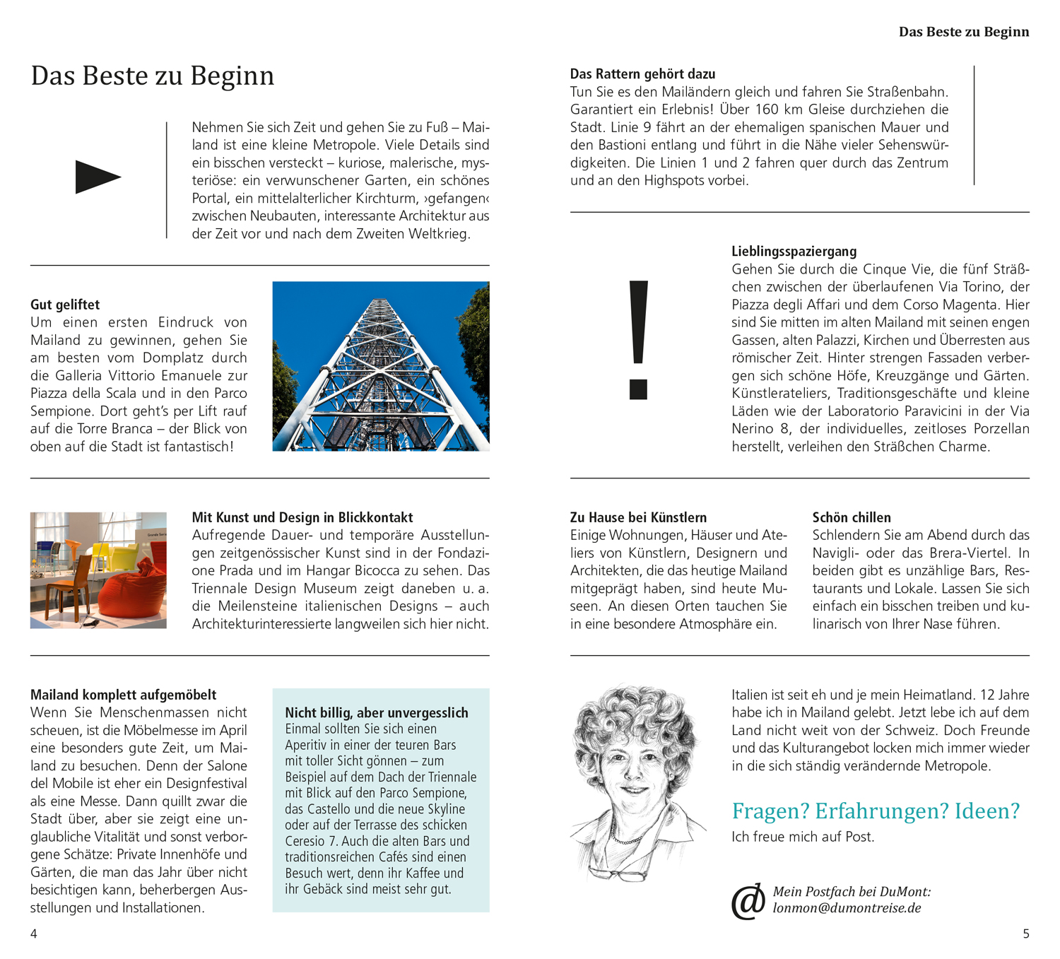 Mit den 15 »Direkt- Kapiteln« des Reiseführers von Aylie Lonmon können Sie sich zwanglos unter die Mailänder mischen, direkt in das Stadtleben eintauchen und die Highlights und Hotspots kennenlernen: alte Palazzi und neue Trendviertel, den Dom und das Opernhaus Scala, historische Einkaufsgalerien oder spannende Museen, das wuchtige Castello Sforzesco oder den Parco Sempione, Mailands grüne Lunge. In eigenen Kapiteln erfahren Sie, wo es sich in fremden Betten gut schläft, wo Sie glücklich satt werden, wohin die Mailänder zum Stöbern und Entdecken gehen und wohin es sie zieht, wenn die Nacht beginnt.