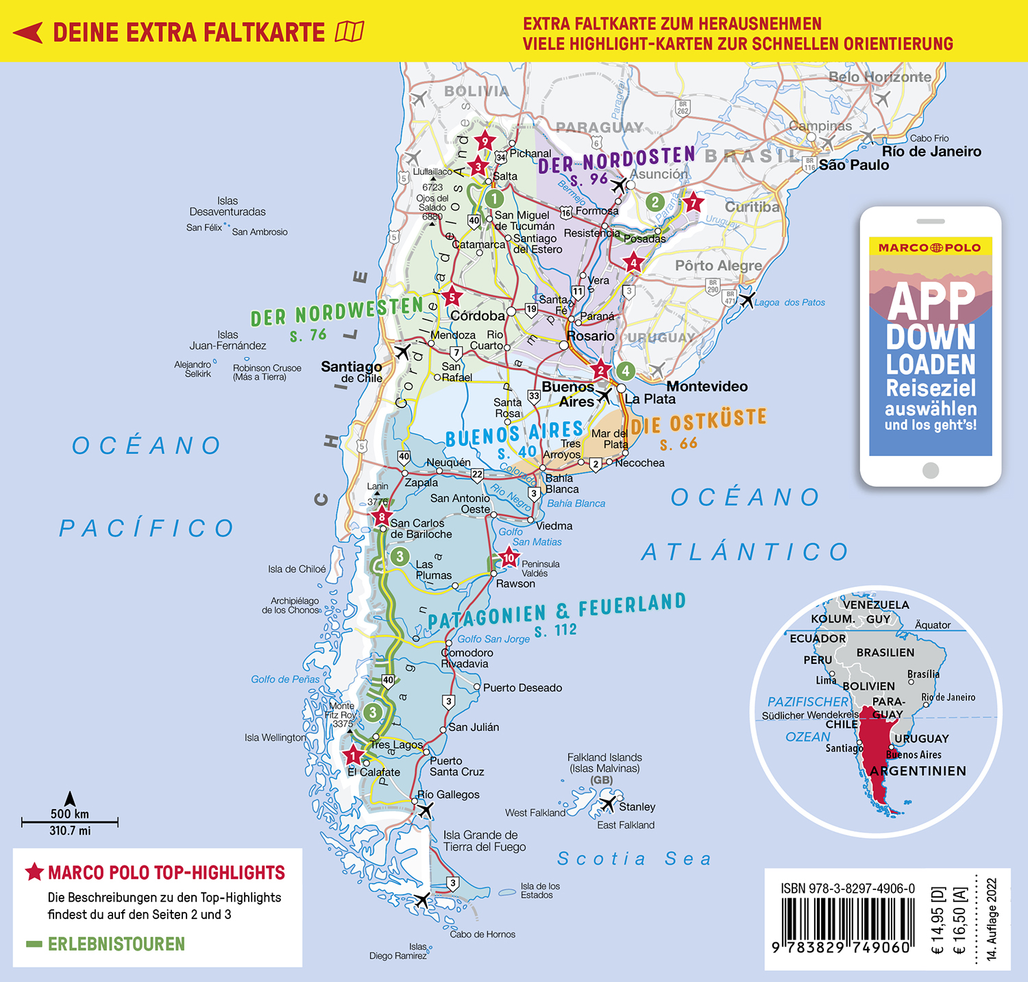 Argentiniens Herz schlägt eindeutig im Takt des Tangos, ganz besonders laut im pulsierenden Nachtleben der großen Städte. Nur in der einsamen Weite Patagoniens dominiert die Stille. Aber Vorsicht: Das Land ist riesig und die Temperaturen stehen hier Kopf. Damit du deine Reise entspannt planen kannst und vor Ort stets die Orientierung behältst, steht dir der MARCO POLO Reiseführer mit vielen Tipps und Infos zur Seite. Wann ist die beste Reisezeit für dich? Welche Region bietet genau das, was du dir im Urlaub wünschst? Erkunde mit deinem MARCO POLO Reiseführer Argentinien in deinem eigenen Rhythmus!