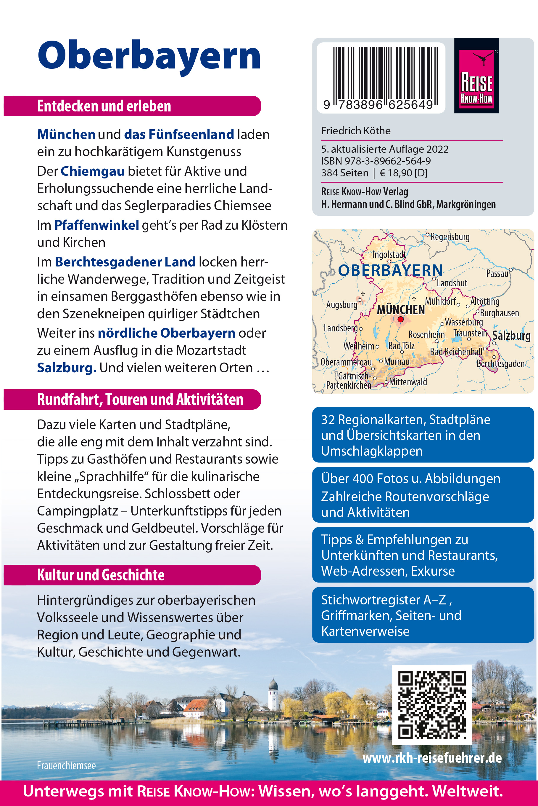 | Schlagworte | Altmühltal • Bayern • Berchtesgadener Land • Blaues Land • Chiemgau • Deutschland • Fünfseenland • Inn • Isarwinkel • Mangfallregion • München • Oberbayern • Pfaffenwinkel • Reiseführer • Reisehandbuch • Salzach • Salzburg • Werdenfelser Land |