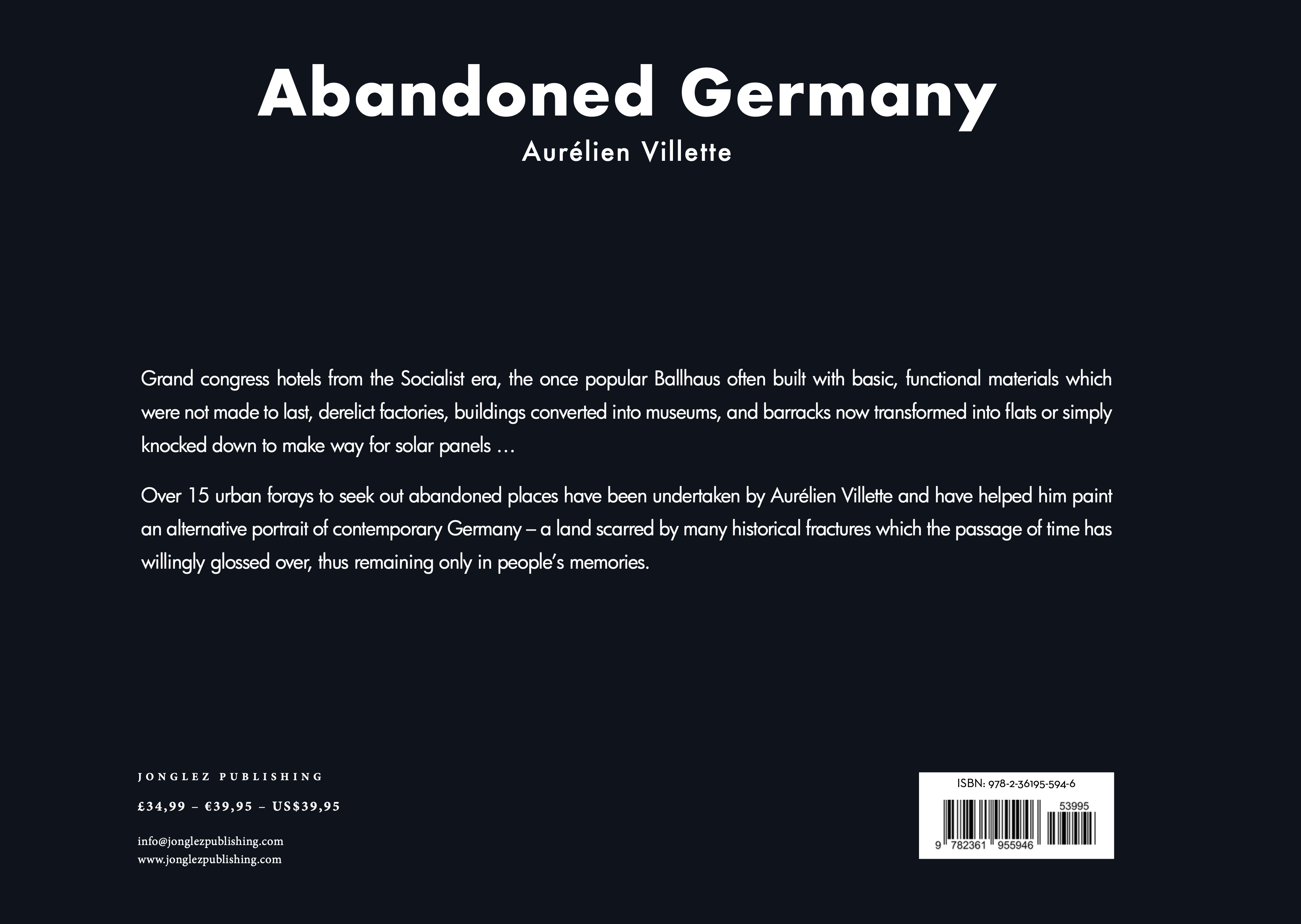 Over 15 urban forays to seek out abandoned places have been undertaken by Aurélien Villette and have helped him paint an alternative portrait of contemporary Germany – a land scarred by many historical fractures which the passage of time has willingly glossed over, thus remaining only in