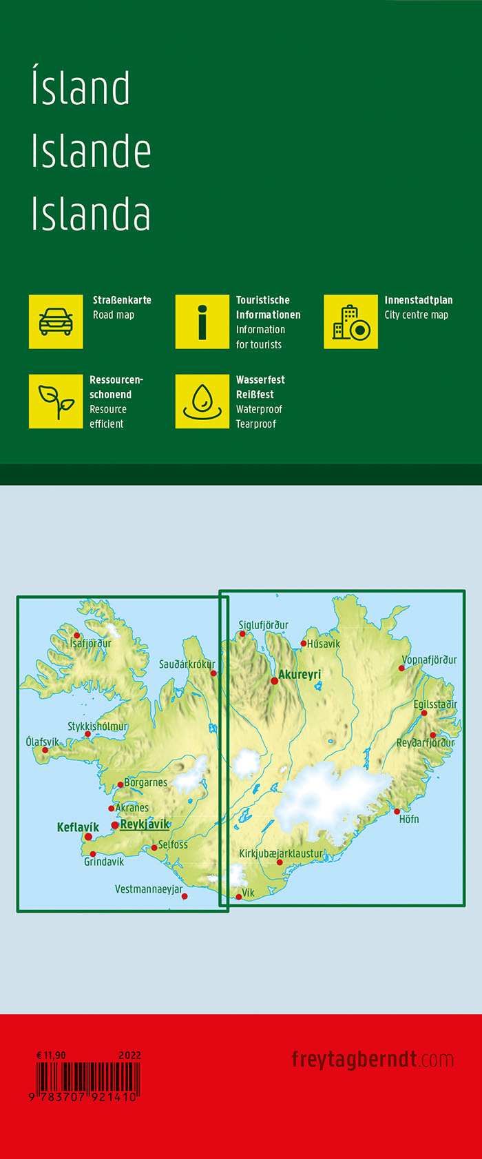 | Schlagworte | Autokarte • Freizeitkarte • Iceland • Island • Ìsland • Karte • Länderkarte • reißfest • Road Map • Straßenkarte • wasserfest |