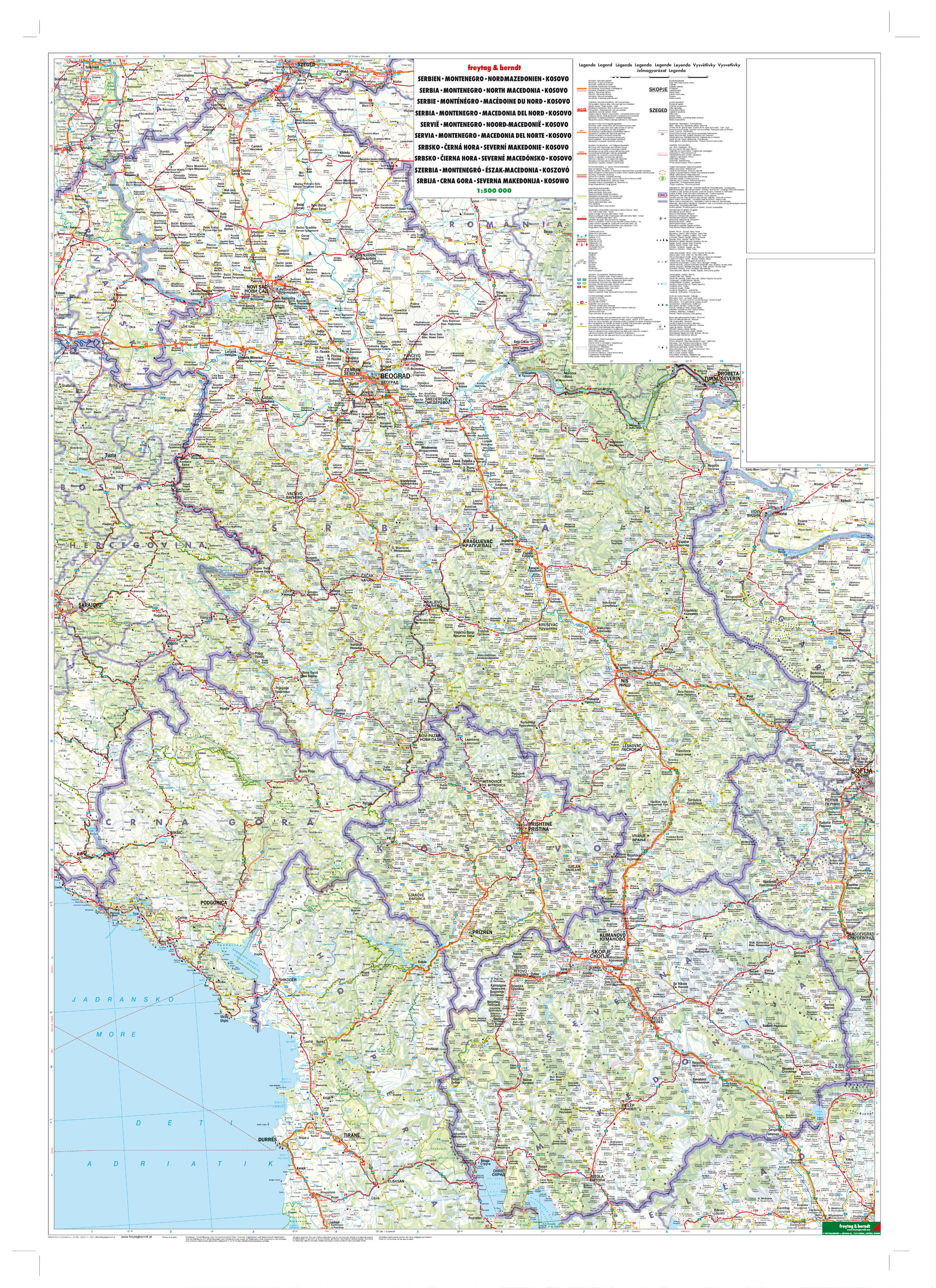 Serbien - Montenegro - Kosovo - Nordmazedonien, Autokarte 1:500.000