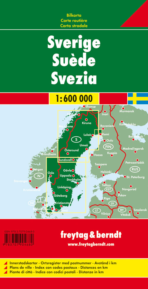 Neben der übersichtlichen Gestaltung verfügt die Straßenkarte "Schweden 1:600.000" über zahlreiche Zusatzinformationen wie z.B. Straßenbeschaffenheit, Sehenswürdigkeiten, Campingplätze und diverse Innenstadtpläne. Mit dem umfangreichen Ortsregister gelingt zudem eine rasche Orientierung. Citypläne von Göteborg, Linköping, Stockholm, Sundsvall, Umea und Uppsala; Ortsregister mit Postleitzahlen, Entfernungen in km, doppelseitig; freytag & berndt Autokarten sind für viele Länder und Regionen weltweit erhältlich.