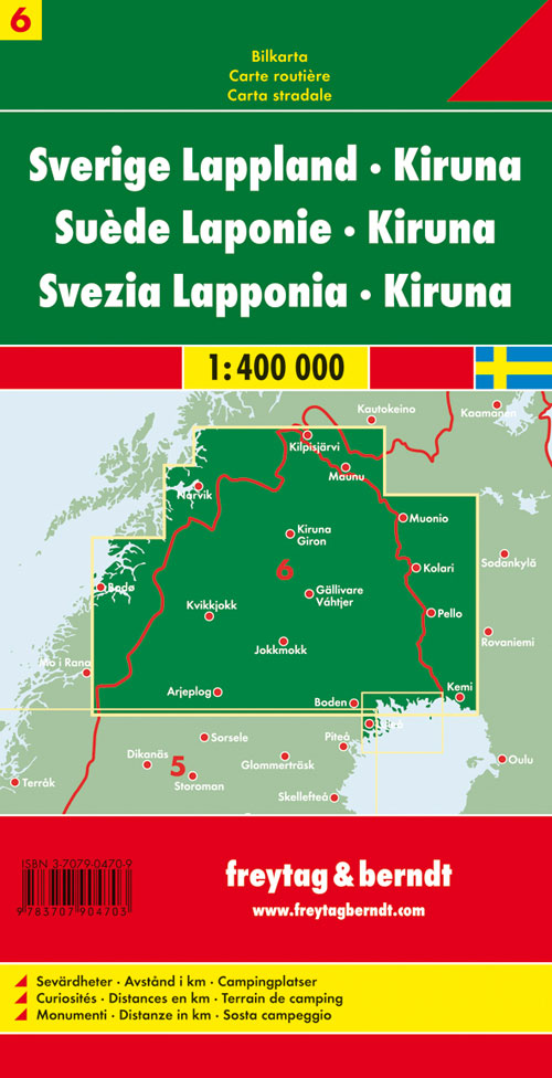 Neben der übersichtlichen Gestaltung bietet die Straßenkarte Schweden Lappland - Kiruna 1:400.000 zahlreiche Zusatzinformationen wie z.B. Straßenbeschaffenheit, Sehenswürdigkeiten und Campingplätze. Mit dem umfangreichen Ortsregister gelingt zudem eine rasche Orientierung.