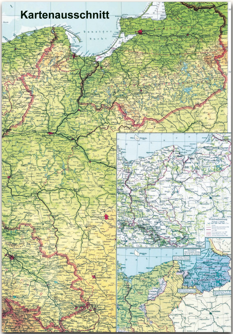 Dieses farbige Kartenwerk zeigt in aller Ausführlichkeit die Ostgebiete des Deutschen Reiches in den Grenzen vom 31.12.1937 - von der Küste der Ostsee bis zum Riesengebirge im Süden. Man kann sich auf Spurensuche begeben nach den Ortschaften der ehemaligen deutschen Provinzen Pommern, Ostpreußen, Schlesien und dem Sudetenland.