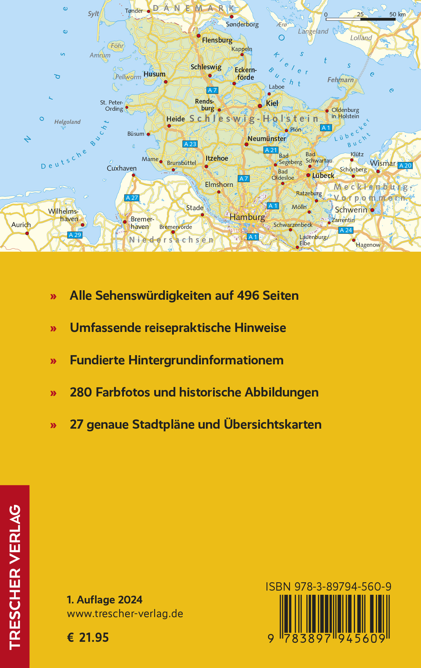 Der Trescher-Reiseführer SCHLESWIG-HOLSTEIN stellt das Bundesland in seiner ganzen Vielfalt ausführlich vor, bezieht alle Inseln und Halligen ein und berücksichtigt auch die weniger bekannten Sehenswürdigkeiten. Er bietet umfangreiche reisepraktische Tipps für Aktivitäten, Unterkünften und Gastronomie sowie Kulturangebote und Sportmöglichkeiten, ein umfangreicher einführender Teil beleuchtet die wechselvolle Geschichte des Landes und macht mit seinen Besonderheiten bekannt. Dieser Reiseführer ist ideal zur Vorbereitung eines Kurzurlaubs im hohen Norden Deutschlands und bietet gleichzeitig eine Fülle von Anregungen für einen mehrwöchigen Aufenthalt.... weitere Reiseführer zu Deutschlands Norden und seinen Küsten finden Sie auf der Website des Trescher Verlags.