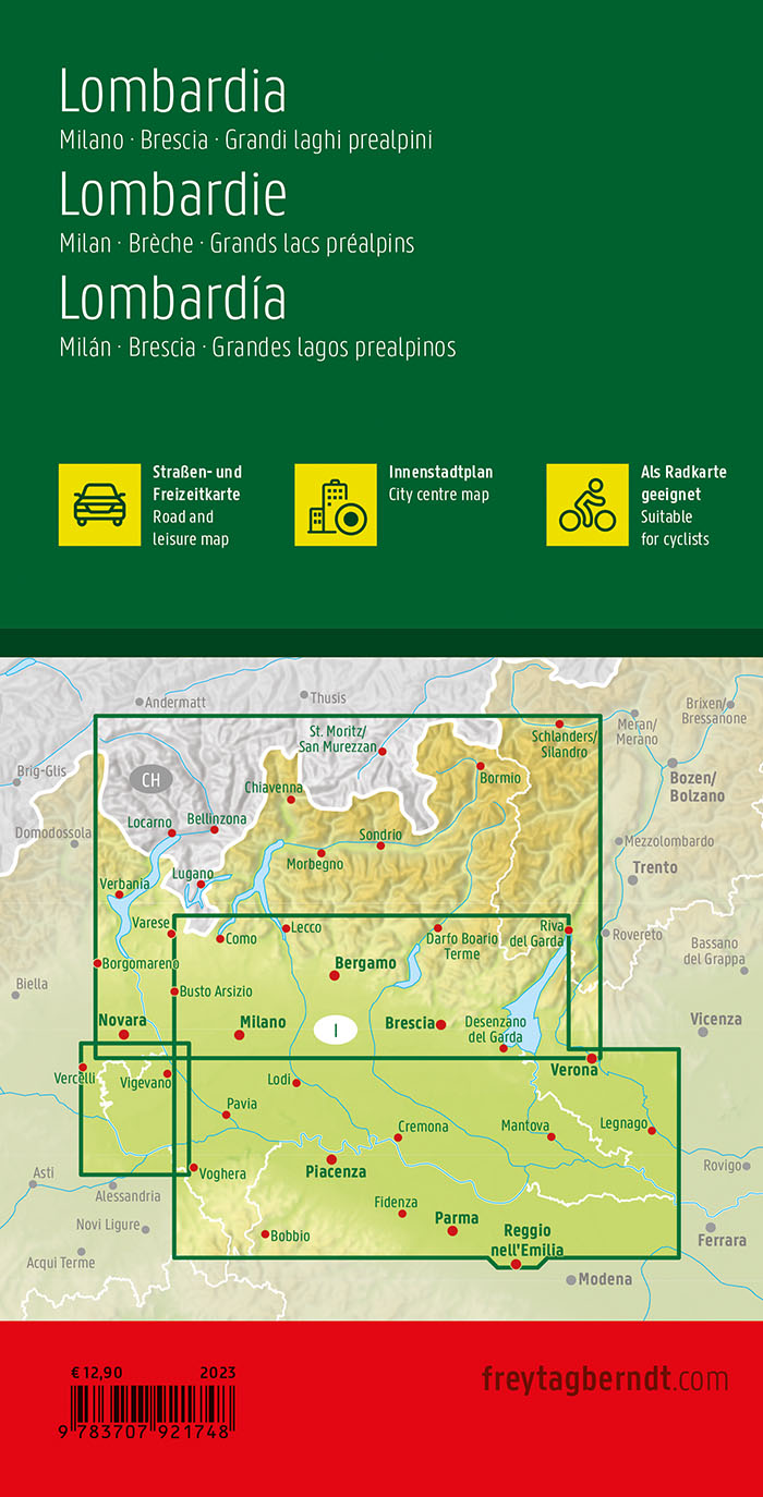 | Schlagworte | Autokarte • Freizeitkarte • Karte • Laghi dell' Italia settetrionale • Lakes in Northern Italy • Länderkarte • Lombardei • Lombardia • Lombardy • Mailand • Milan • Milano • Oberitalienische Seen • Road Map • Straßenkarte |