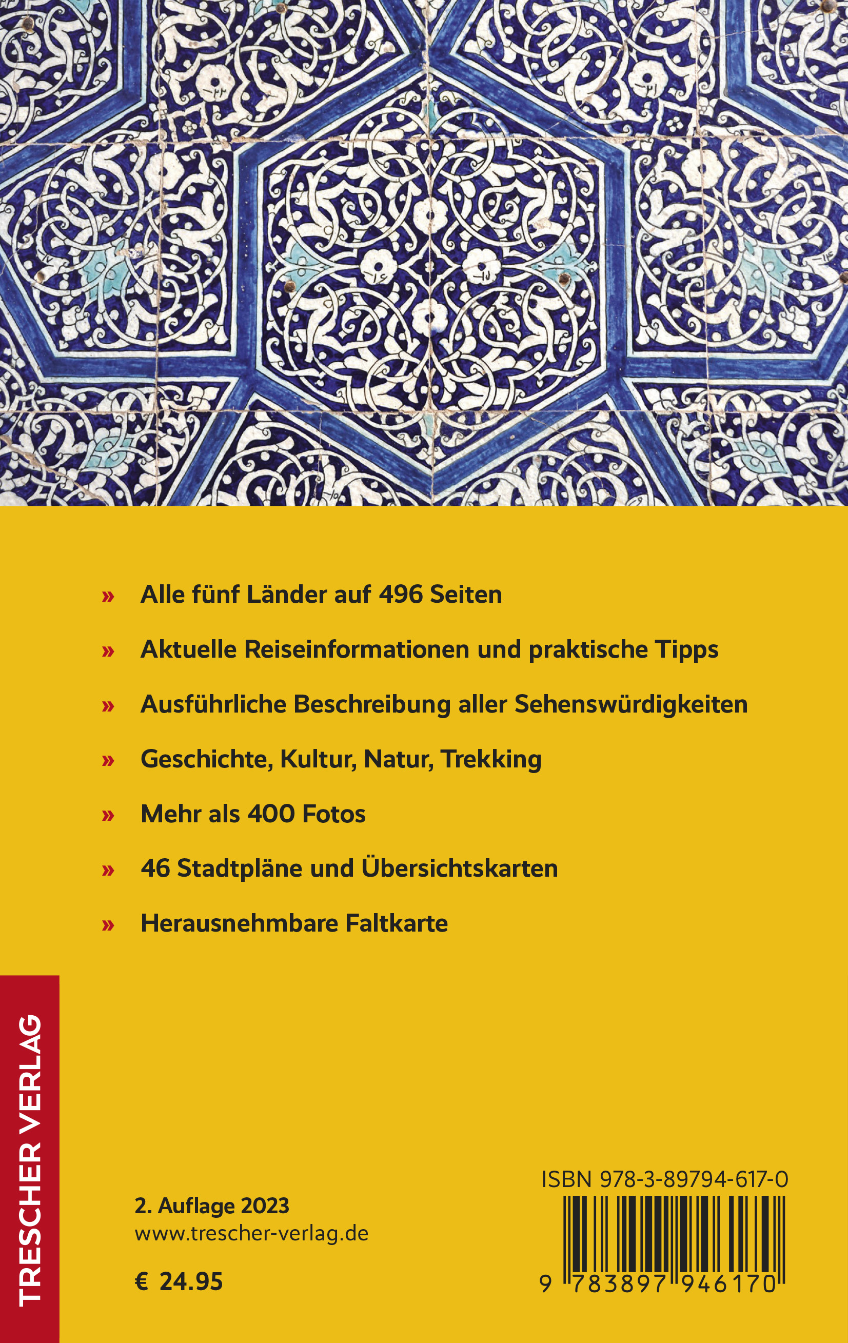 Neben der Beschreibung der Sehenswürdigkeiten und den umfangreichen Servicetipps enthält dieser Reiseführer ausführliche Informationen zu Geschichte und Kultur der fünf Länder Kasachstan, Kirgistan, Usbekistan, Tadschikistan sowie Turkmenistan. Er eignet sich gleichermaßen für Studienreisende und Individualtouristen.... detailliertere Reiseführer zu den einzelnen Ländern Zentralasiens finden Sie auf der Website des Trescher Verlags.