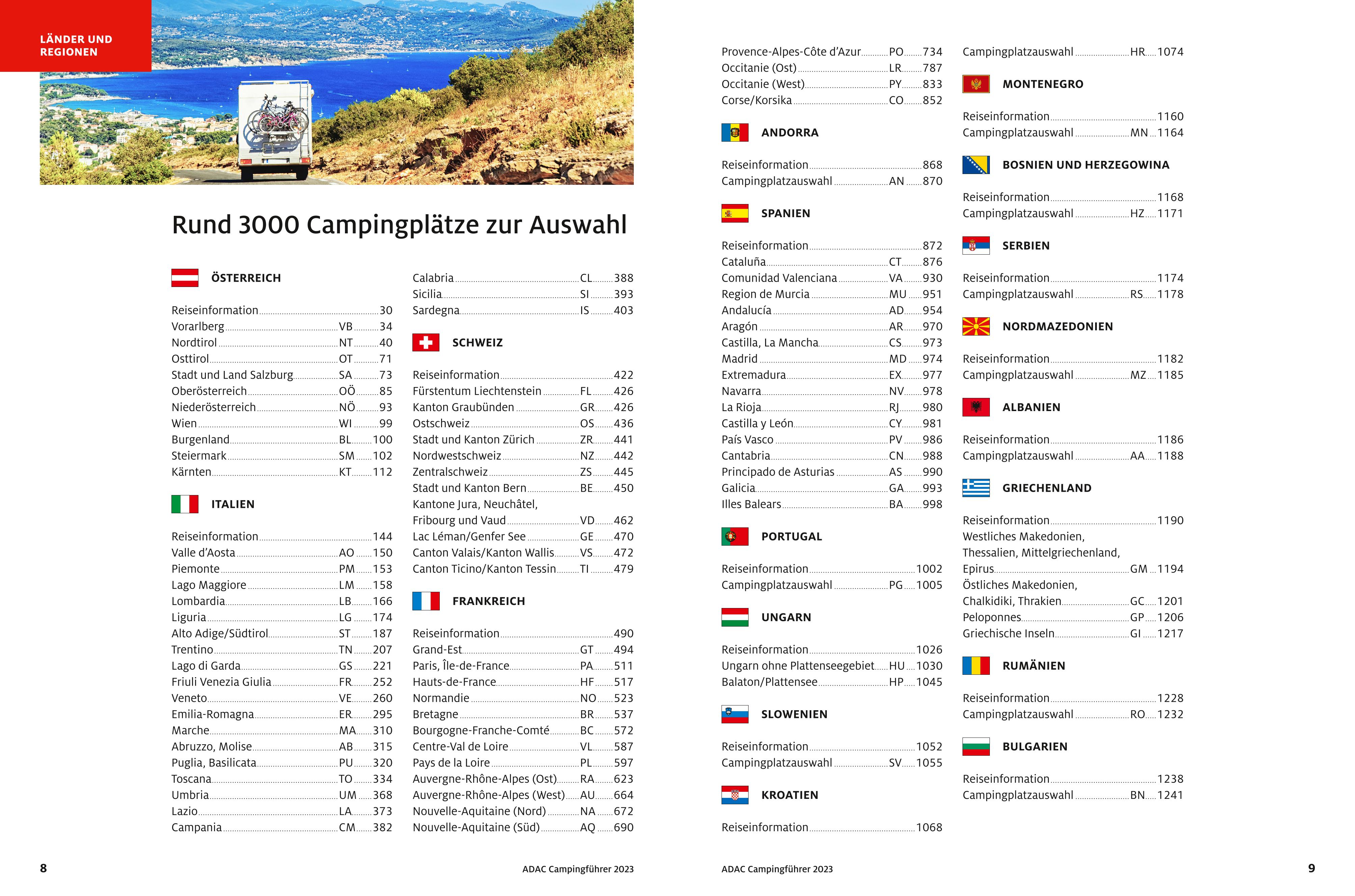 Rund 2.900 Campingplätze in 18 Ländern werden vorgestellt und mit der zuverlässigen Bewertung der Plätze mit bis zu 5 Sternen klassifiziert. Mit rund 3000 Rabatt-Angeboten spart die ADAC Campcard im Urlaub bares Geld. Mit zahlreichen touristischen Informationen zu jedem Land und vielen Regionen, bewährt übersichtlich die Darstellung aller Plätze auf der großformatigen Planungskarte: So ist der Campingplatz für die nächste Nacht schnell gefunden. In Zusammenarbeit mit PiNCAMP, dem Campingportal des ADAC.