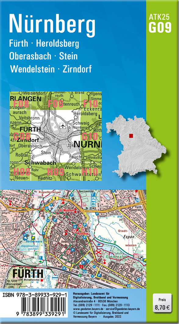 Wer es genau wissen will, greift zur ATK25. Diese Kartenserie im Maßstab 1:25000 bildet mit ihrer detaillierten Darstellung das komplette Verkehrsnetz mit allen Straßen und Wegen ab.237 Einzelblätter stellen Bayern flächendeckend dar. Ein Kartenblatt umfasst ca. 21 km x 22 km.Was bietet die ATK25?- individuelle Freizeitgestaltung mit allen ausgeschilderten Wander- und Radwanderwegen- sichere Orientierung auch abseits der markierten Routen- umfangreiches Spektrum an Freizeiteinrichtungen und Sehenswürdigkeiten- anschauliche Wiedergabe der GeländeformenKartenblatt ATK25-G09 Nürnberg:REGION: Mittelfranken, KnoblauchslandORTE: Nürnberg, Fürth, Heroldsberg, Oberasbach, Stein, Wendelstein, Zirndorf