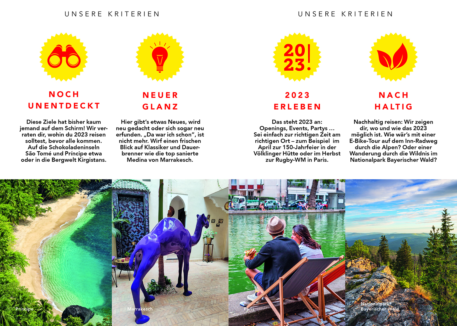 - die Top-Ziele 2023 in Deutschland, in Europa und in der Welt