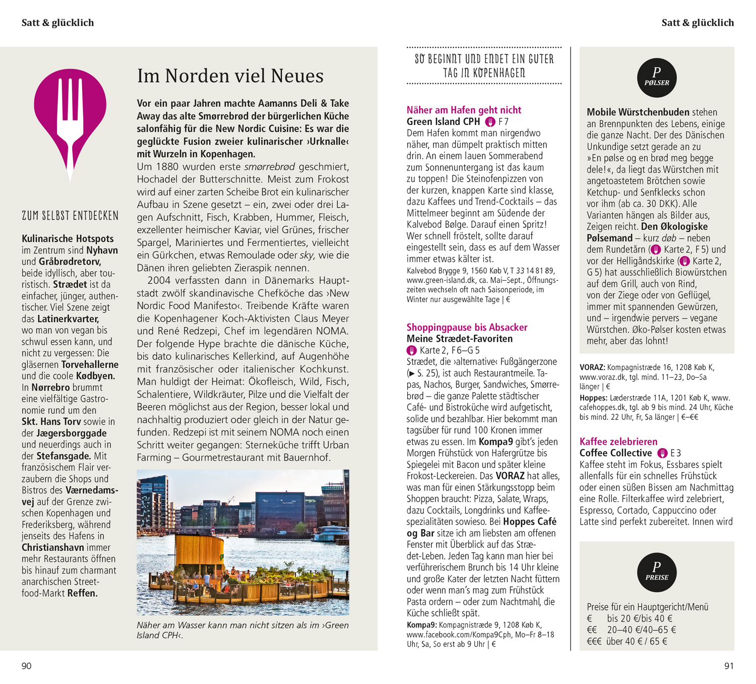 In eigenen Kapiteln erfahren Sie, wo es sich in fremden Betten gut schläft, wo Sie glücklich satt werden, wohin die Kopenhagener zum Stöbern und Entdecken gehen und wohin es sie zieht, wenn die Nacht beginnt.
