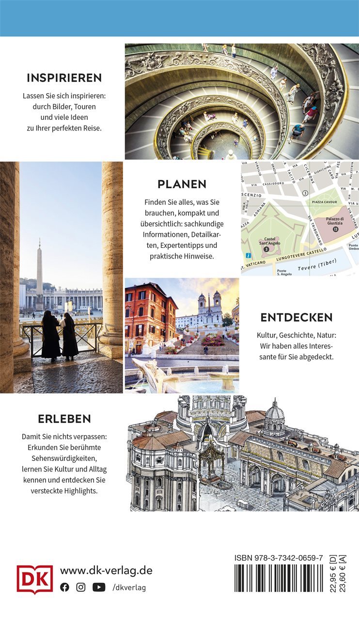 Michelangelos Fresken in der Sixtinischen Kapelle bestaunen, eine Münze in die Fontana di Trevi werfen oder auf den Spuren der Gladiatoren im Kolosseum wandeln - Rom ist einfach magisch. Mit ausführlichem Expertenwissen, den berühmten 3-D-Aufrisszeichnungen, einer wetterfesten Extra-Karte zum Herausnehmen und über 450 stimmungsvollen Fotos können Sie diese schillernde Stadt voller Geschichte und Kultur hautnah erleben. Dieser praktische Rom-Reiseführer ist der ultimative Begleiter für Ihre Städtereise.