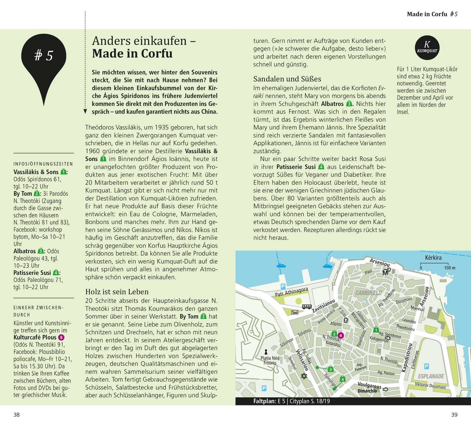 Dank vieler Tipps und Adressen erfahren Sie, wo es sich in fremden Betten gut schläft, wo Sie glücklich satt werden, wohin die Korfioten zum Stöbern und Entdecken gehen und wohin es sie zieht, wenn die Nacht beginnt.