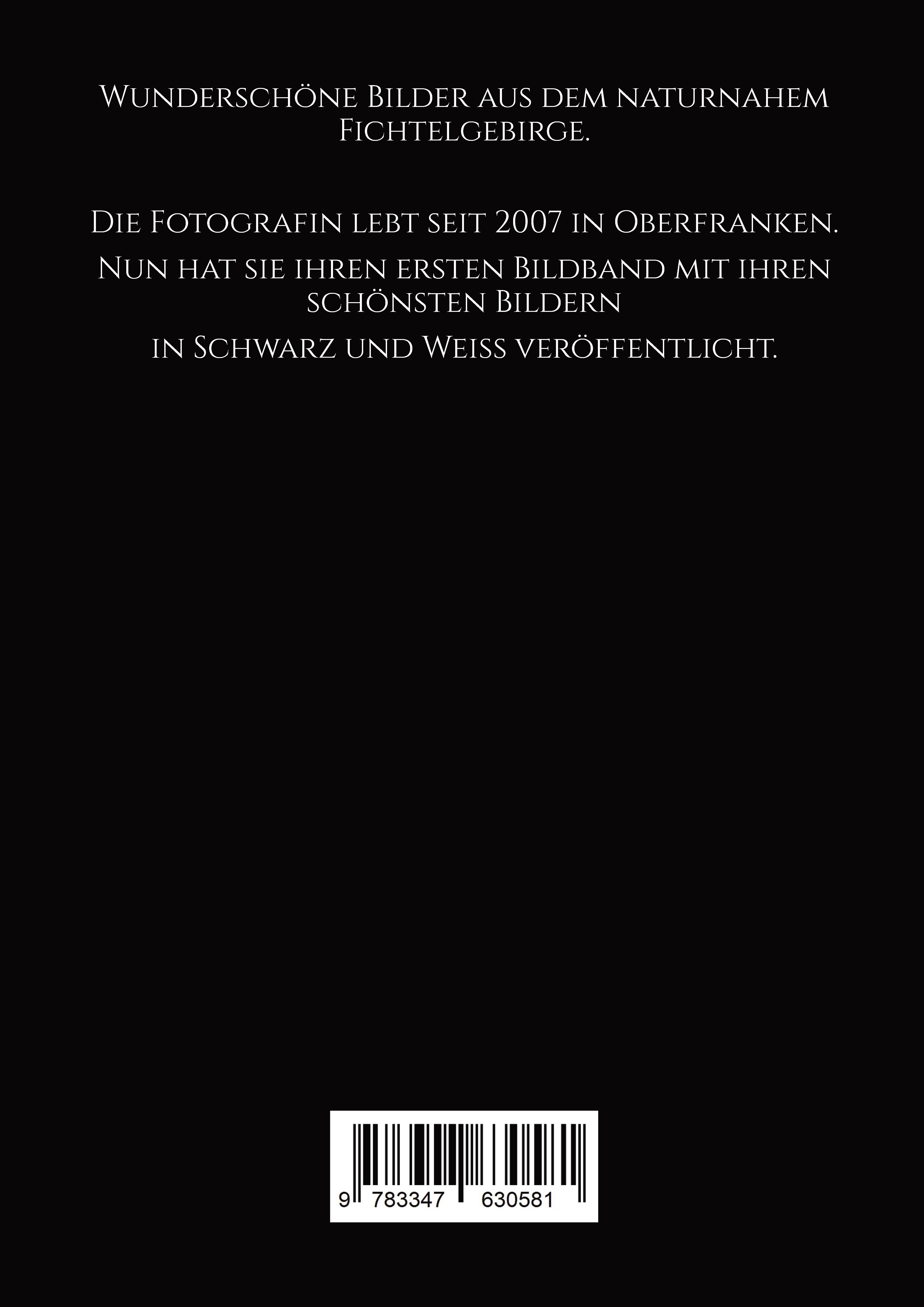Wunderschöne Bilder aus dem naturnahem Fichtelgebirge.Die Fotografin lebt seit 2007 in Oberfranken. Nun hat sie ihren ersten Bildband mit ihren schönsten Bildernin Schwarz und Weiß veröffentlicht.