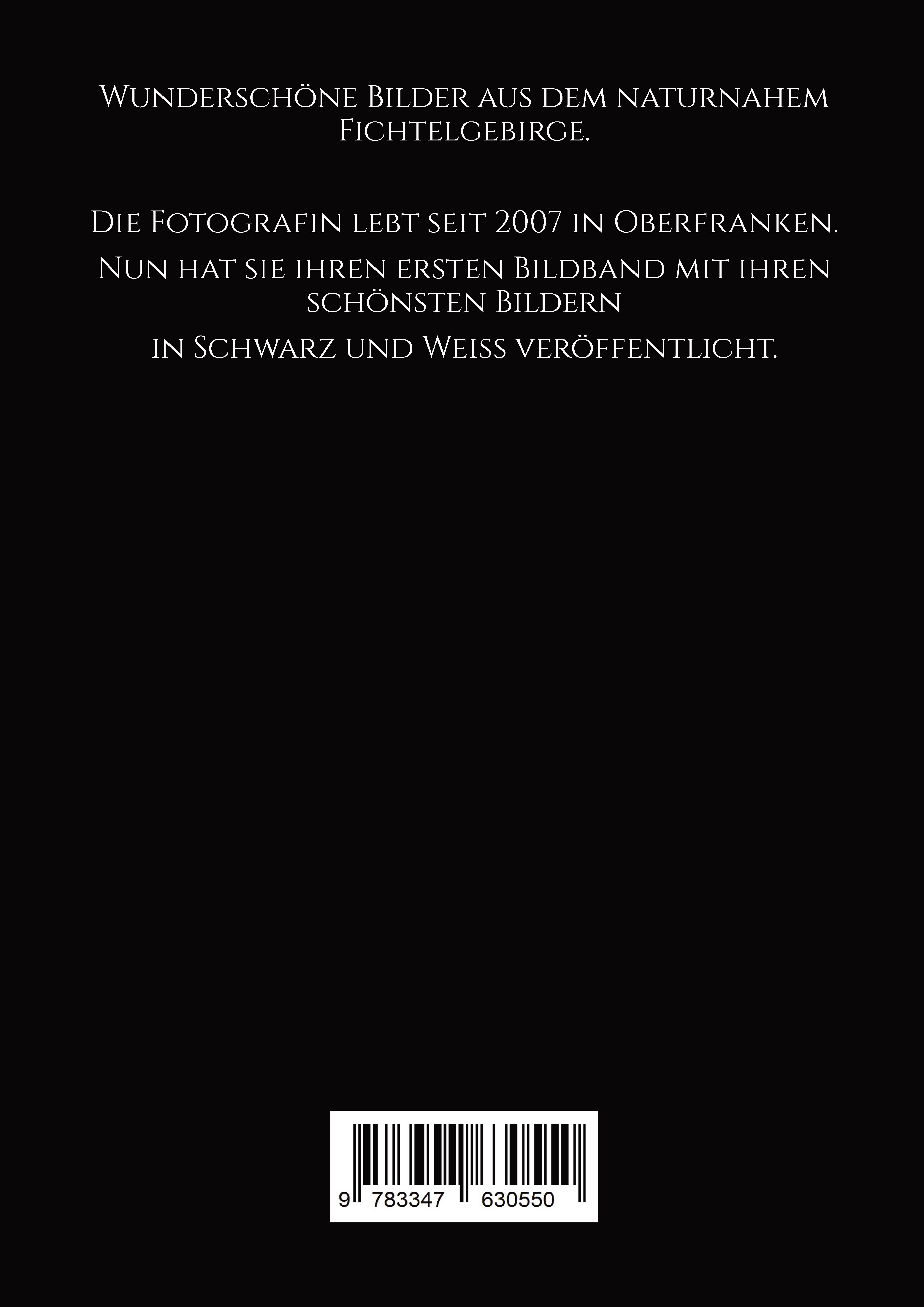 Wunderschöne Bilder aus dem naturnahem Fichtelgebirge.Die Fotografin lebt seit 2007 in Oberfranken. Nun hat sie ihren ersten Bildband mit ihren schönsten Bildernin Schwarz und Weiß veröffentlicht.