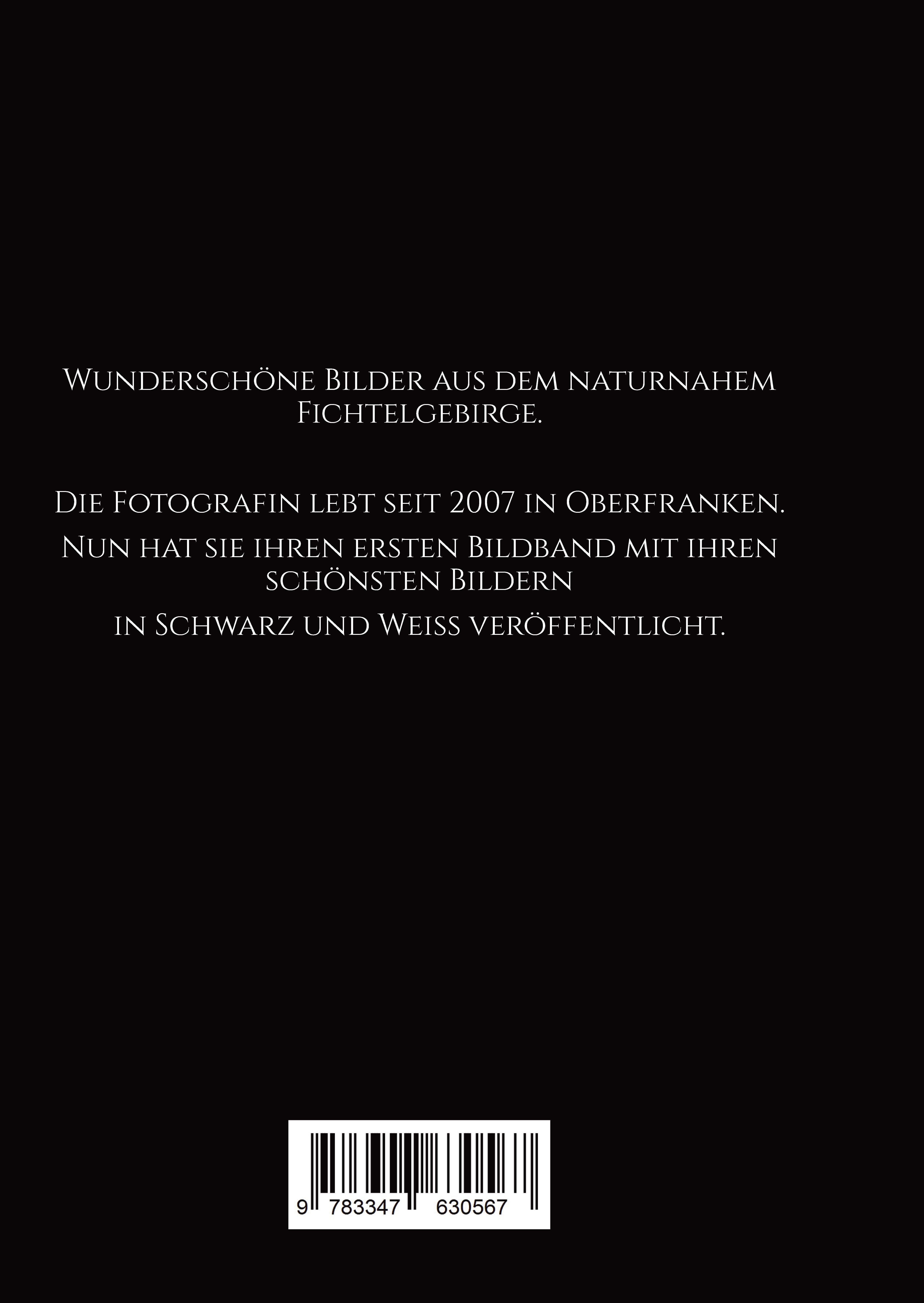 Wunderschöne Bilder aus dem naturnahem Fichtelgebirge.Die Fotografin lebt seit 2007 in Oberfranken. Nun hat sie ihren ersten Bildband mit ihren schönsten Bildernin Schwarz und Weiß veröffentlicht.