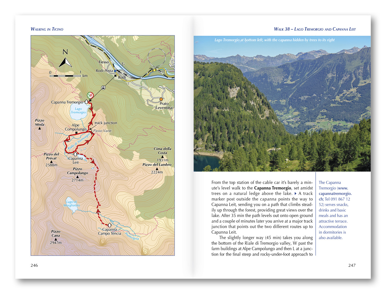 The walks range from 4 to 19km (2–12 miles) and can be enjoyed in 1–8 hours. They are presented in four sections, covering Lugano, Locarno, Bellinzona/Biasca and Airolo.