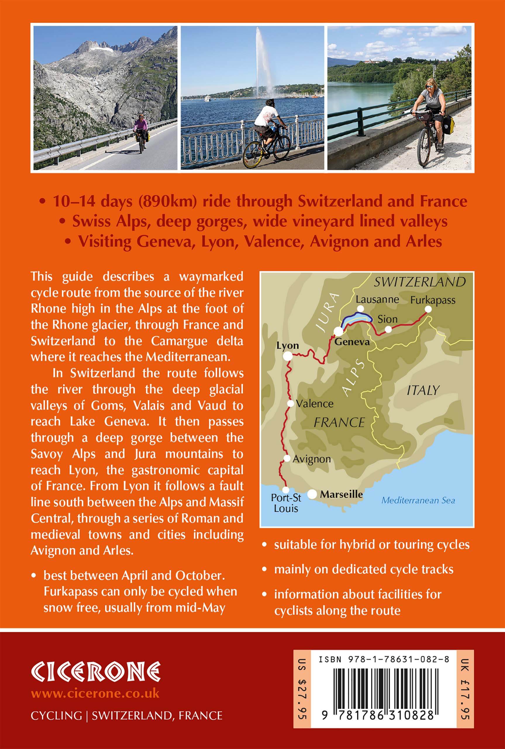 Guidebook to cycling the Rhone Cycle Route, an 895km ride through France and Switzerland from the Swiss Alps to the Mediterranean Sea. Divided into 20 stages, each approximately 45km long, the route can be completed by most cyclists in 10 to 14 days. Includes information on preparation, navigation, accommodation and amenities on route.