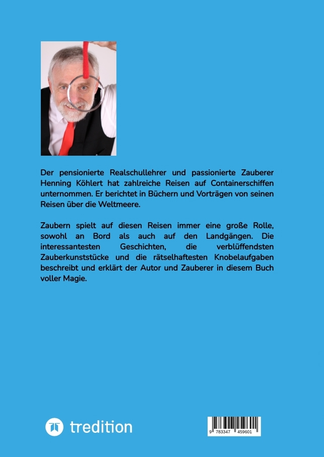 -Zaubern - Frachtschiffreisen - Seereisen - UnterhaltungSeit seiner Pensionierung hat der ehemalige Realschullehrer für Englisch und Sport Frachtschiffreisen über fast alle Weltmeere unternommen. Über seine Reisen berichtet er in Büchern und Vorträgen. Zaubern spielt auf diesen Reisen immer eine große Rolle, sowohl an Bord als auch auf seinen Landgängen. Die interessantesten Geschichten, die verblüffendsten Zauberkunststücke und die rätselhaftesten Knobelaufgaben beschreibt und erklärt der Autor und Zauberer in diesem Buch voller Magie.