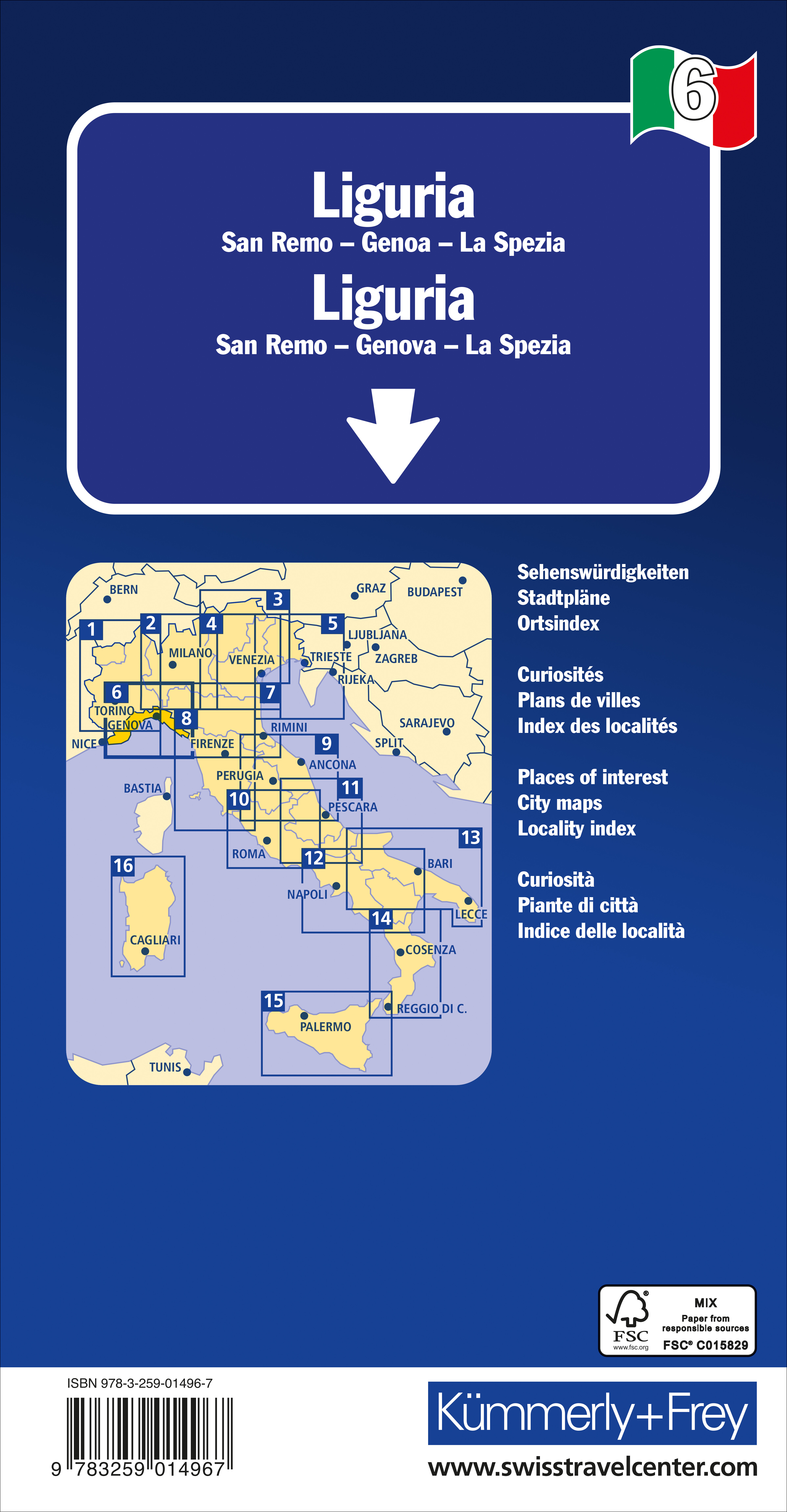 Kümmerly+Frey Regional-Strassenkarte 6 Ligurien 1:200.000